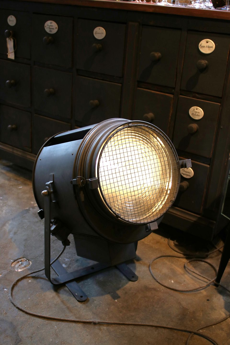 Gammel Fransk projektør af mærket "Cremer-Paris" fra 40érne i afpudset metal med super fin mørk patina.