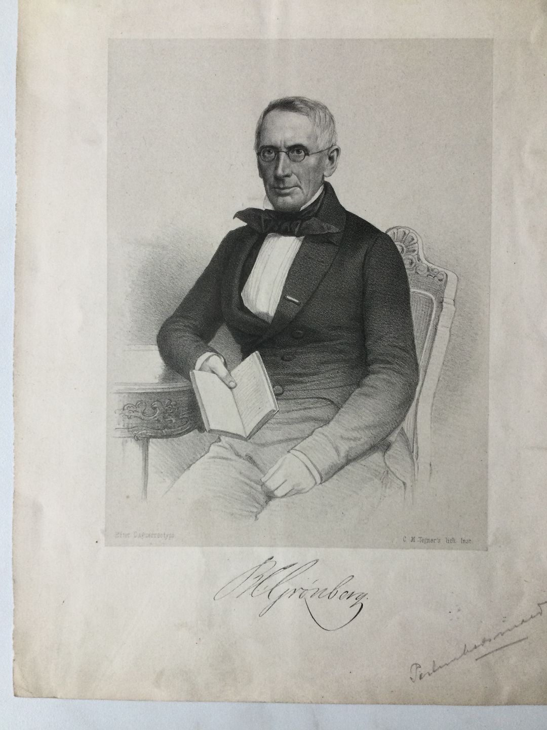 Litografi af C.M. Tegner - Portræt af Forfatteren Bendt Christian Grønberg (1791-1864).