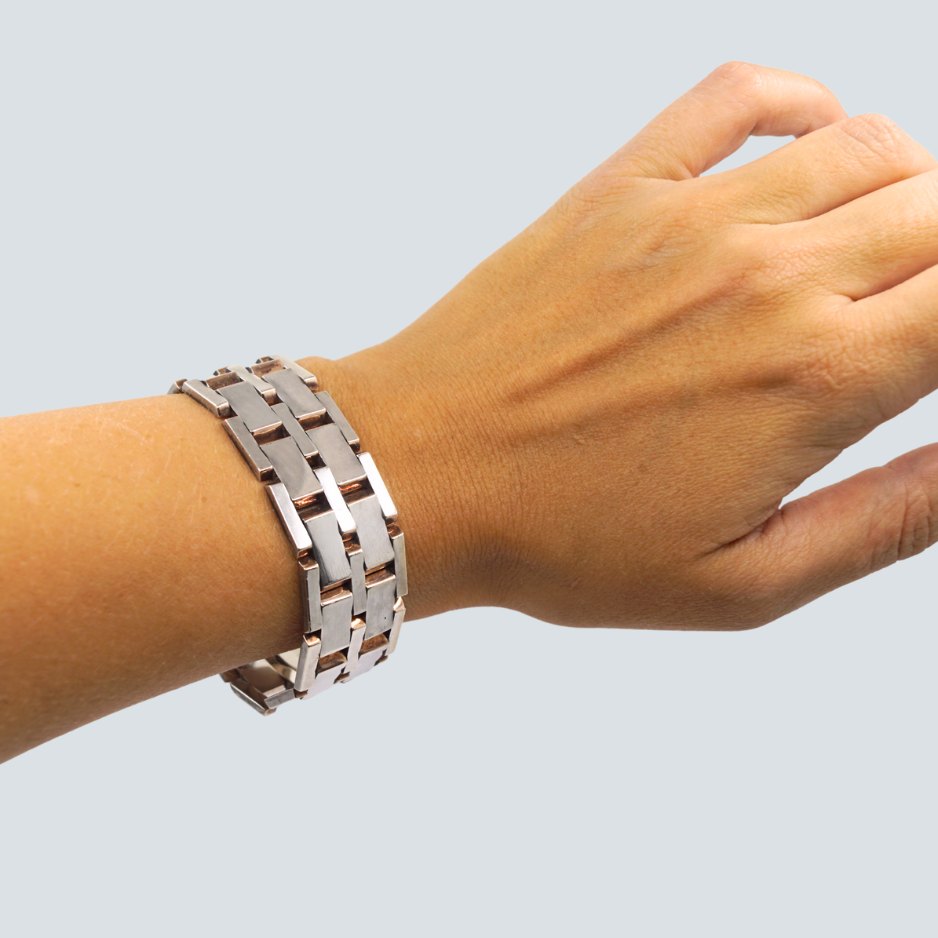 A. Michelsen; Blokarmbånd af sterlingsølv. Ca. fra 1970.