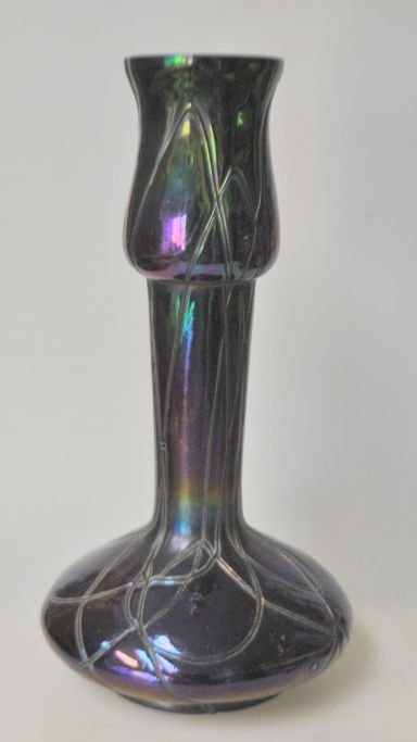 Loetz-Vase, Jugendstil, um 1900. Aus irisierendem Glas mit einer Reihe von Glasstufendekoren. H.: 29 cm.Perfekter Zustand!