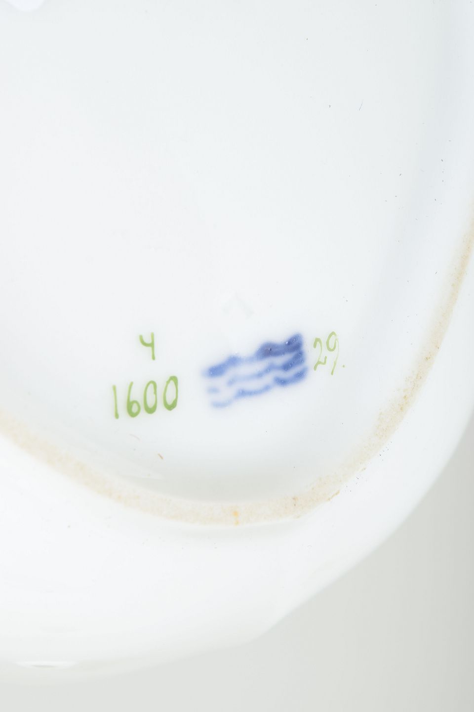 Royal Copenhagen blev grundlagt i 1775 under Dronning Juliane Maries protektion og er berømt for sit håndmalede porcelæn. “Sachsisk Blomst” blev introduceret i slutningen af 1700-tallet og inspireret af botaniske stik. Serien forblev populær langt ind i det 20. århundrede, og kombinationer af mindre fade og vaser var populære som bord- og interiørdekoration.