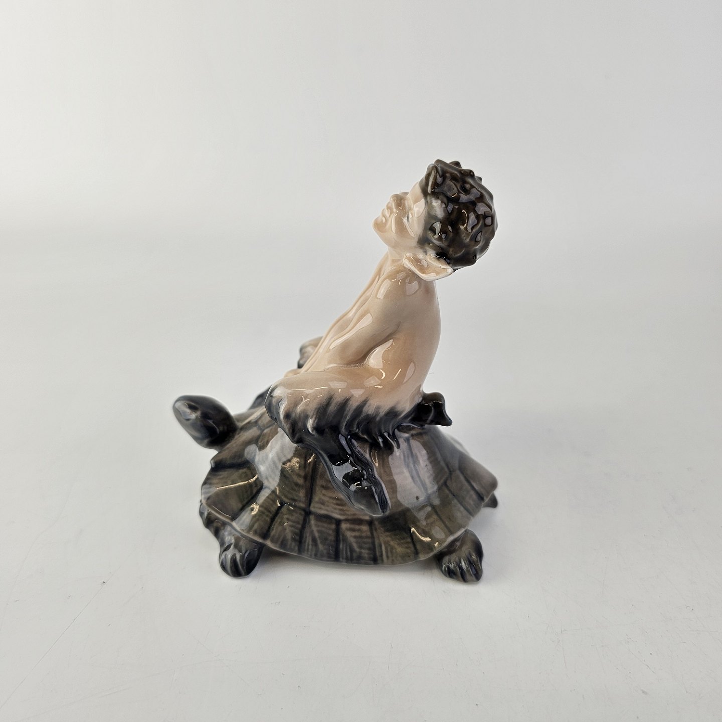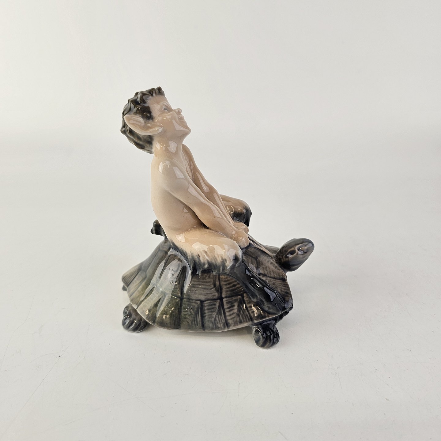 Kongelig figur i porcelæn med motiv af en faun som sidder på ryggen af en skildpaddeNr. 858