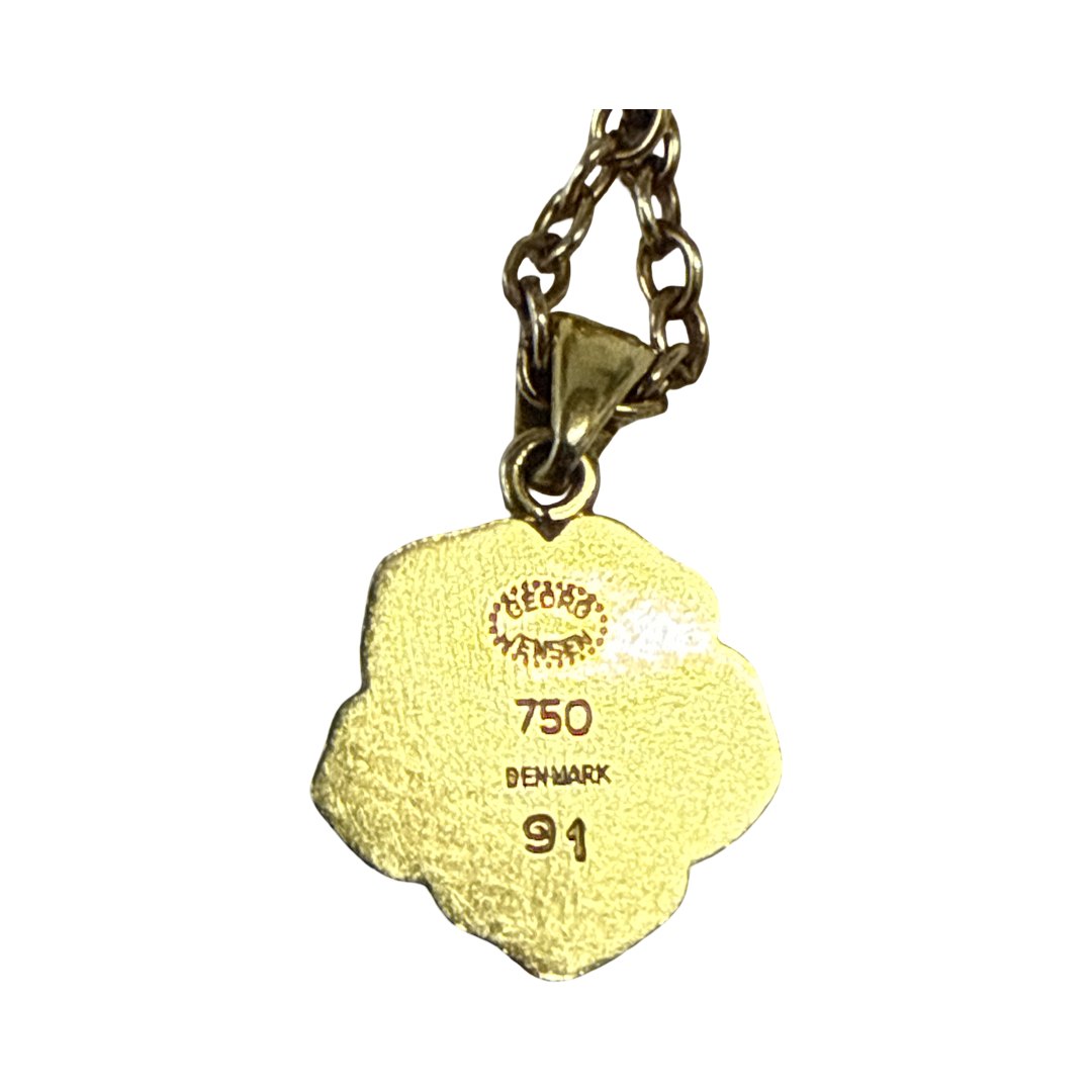 Smukt og sjældent Georg Jensen årssmykke fra 2002, udført i 18 karat massivt guld og prydet med ægte diamant.