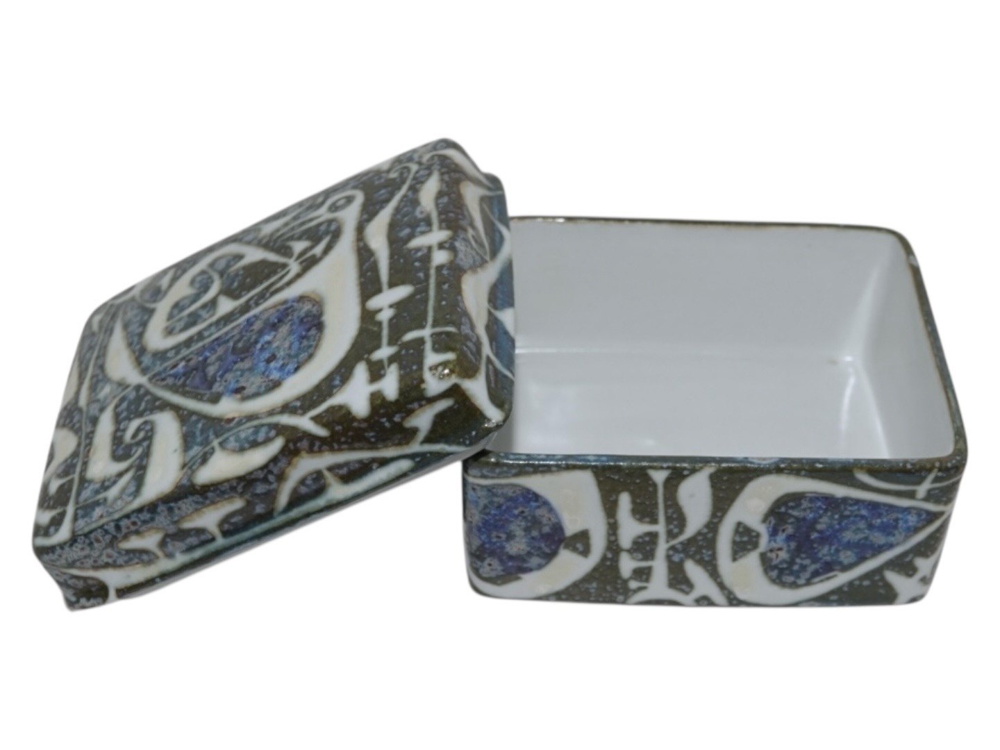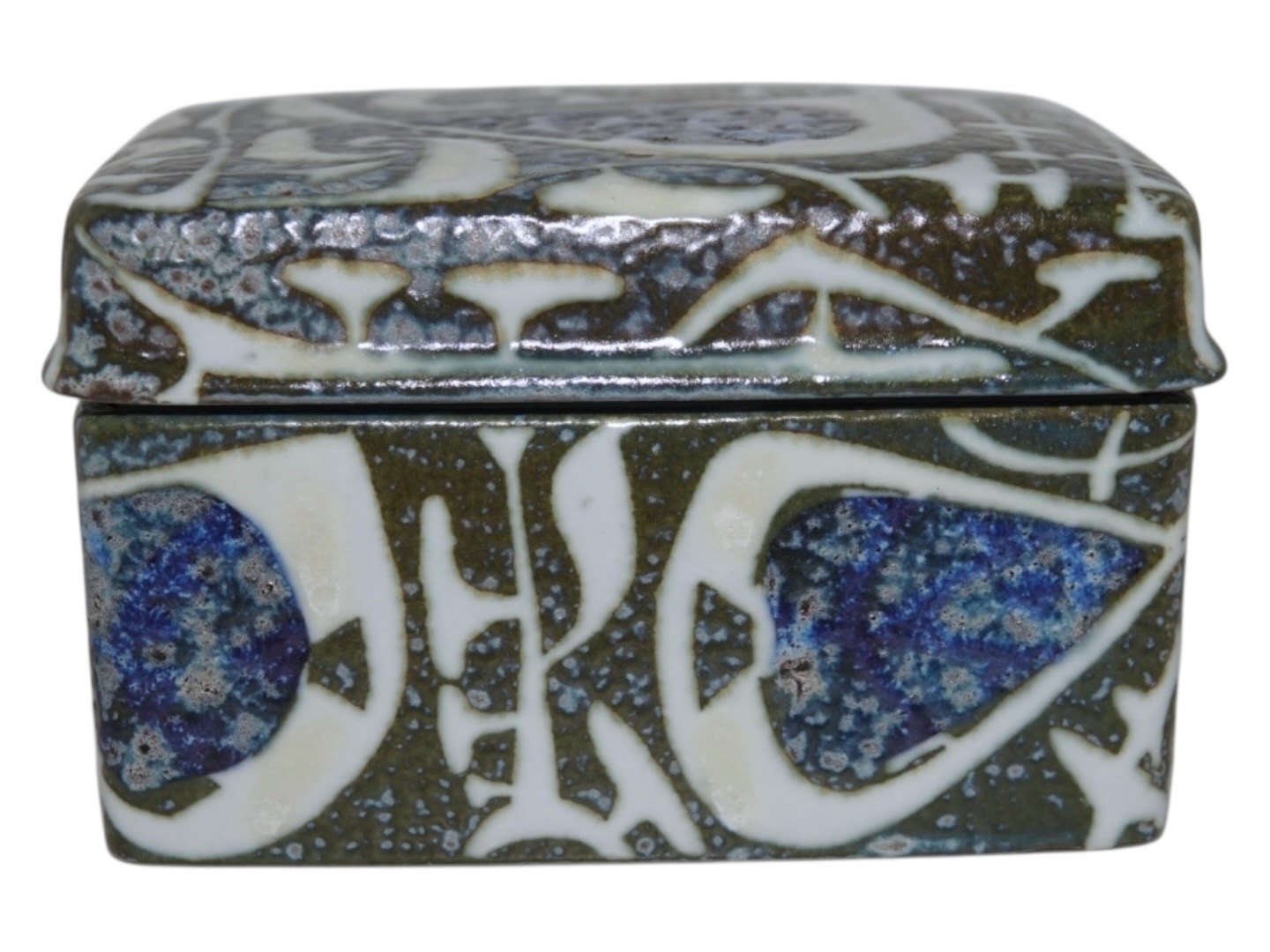 Måler 10,0 x 7,8 cm., højde 6,0 cm. inklusiv låget.