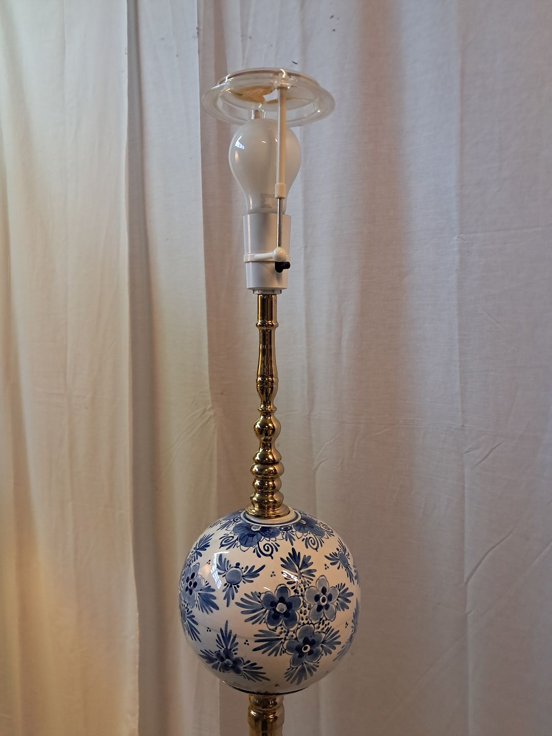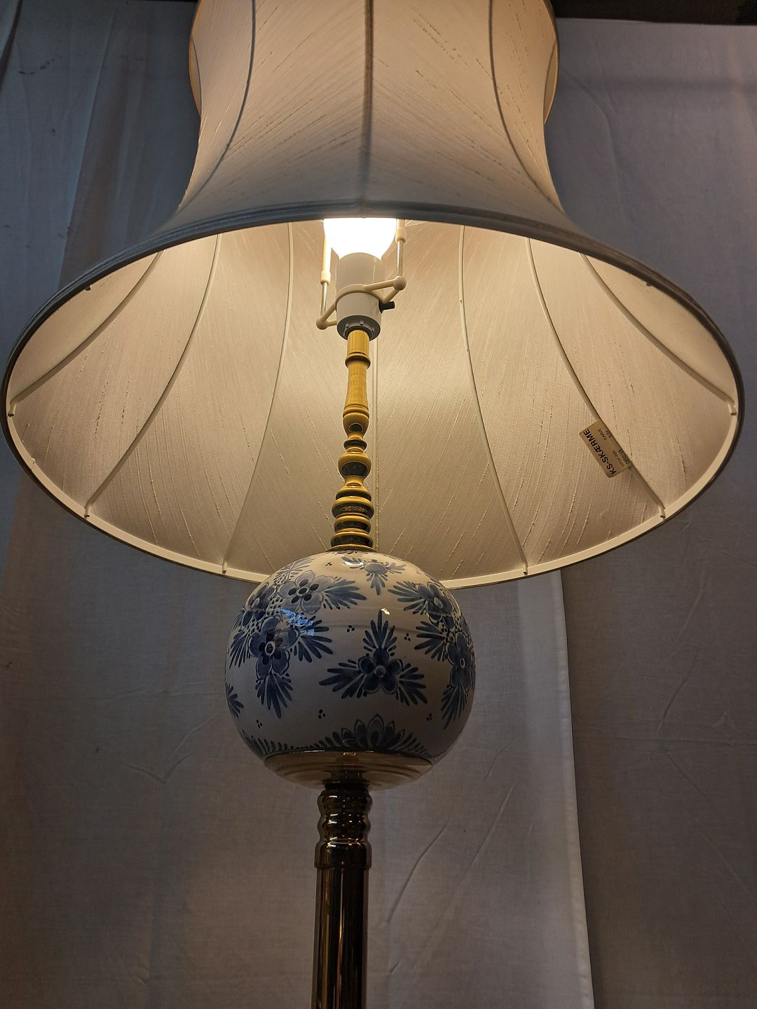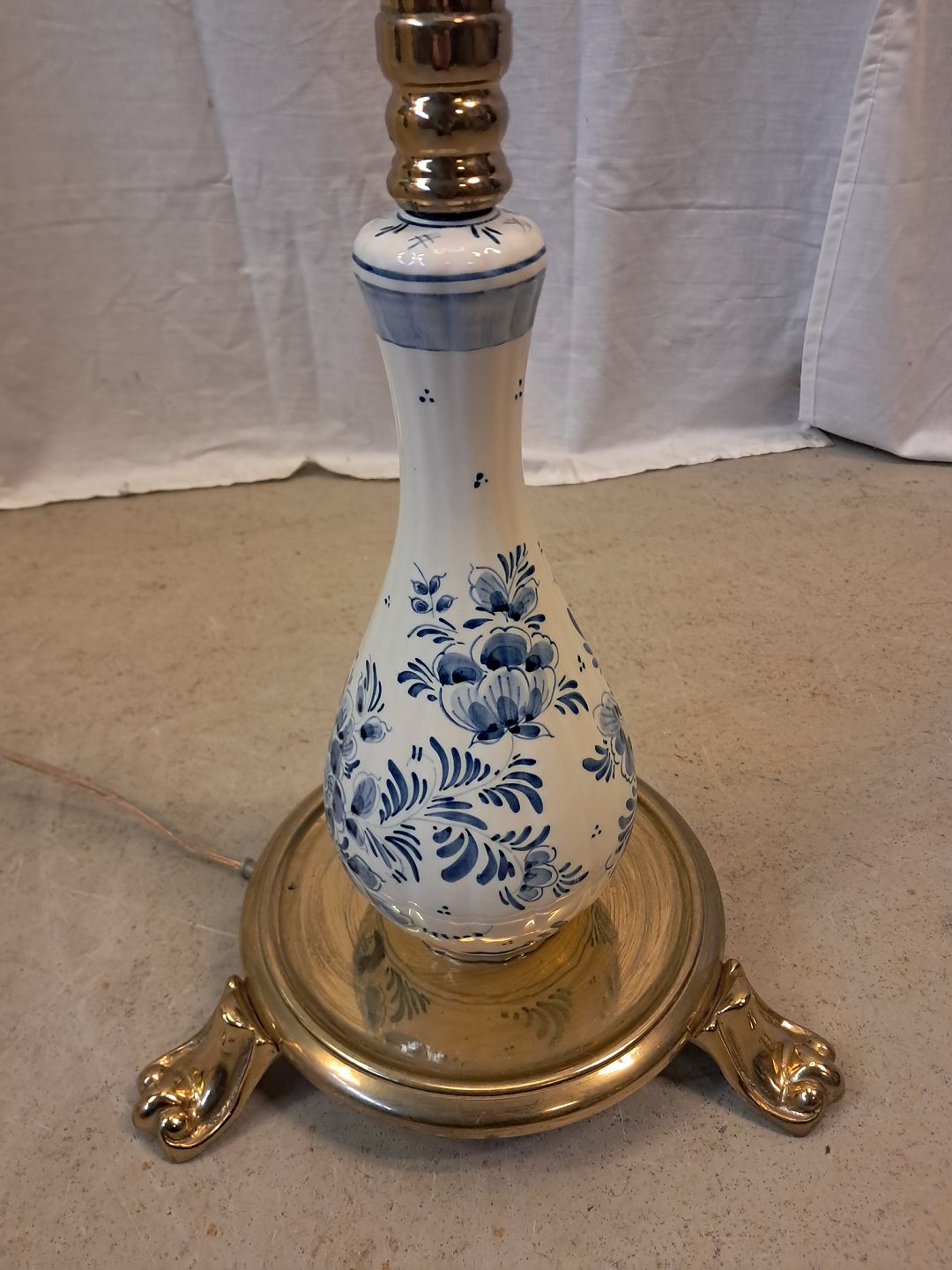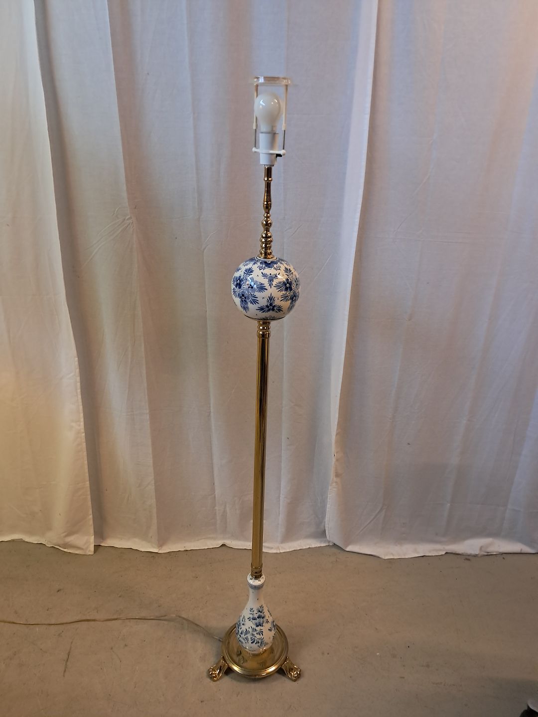Gulvlampe i metal og pocelæn med skærm, fra 1980erne.