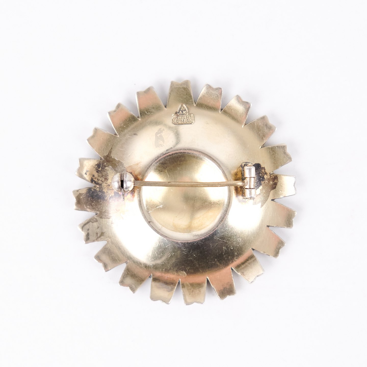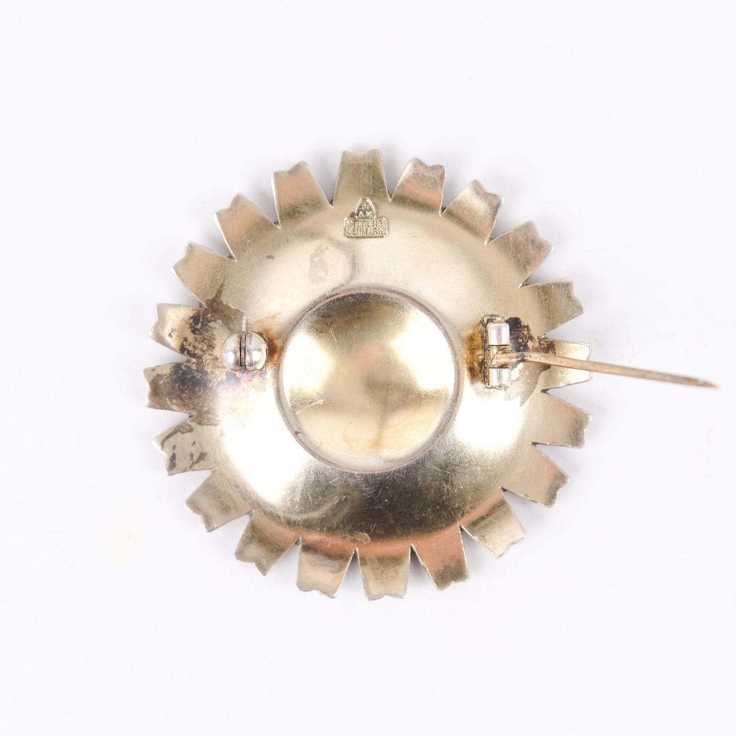 Vergoldete Brosche aus den 1940er Jahren von Anton Michelsen, gestempelt AM Sterling Denmark. Die Emaille ist vollständig intakt. Ein klassisches Beispiel dänischer Schmuckkunst und ein dekoratives, gut erhaltenes Stück.— Zeitraum: 1940er Jahre