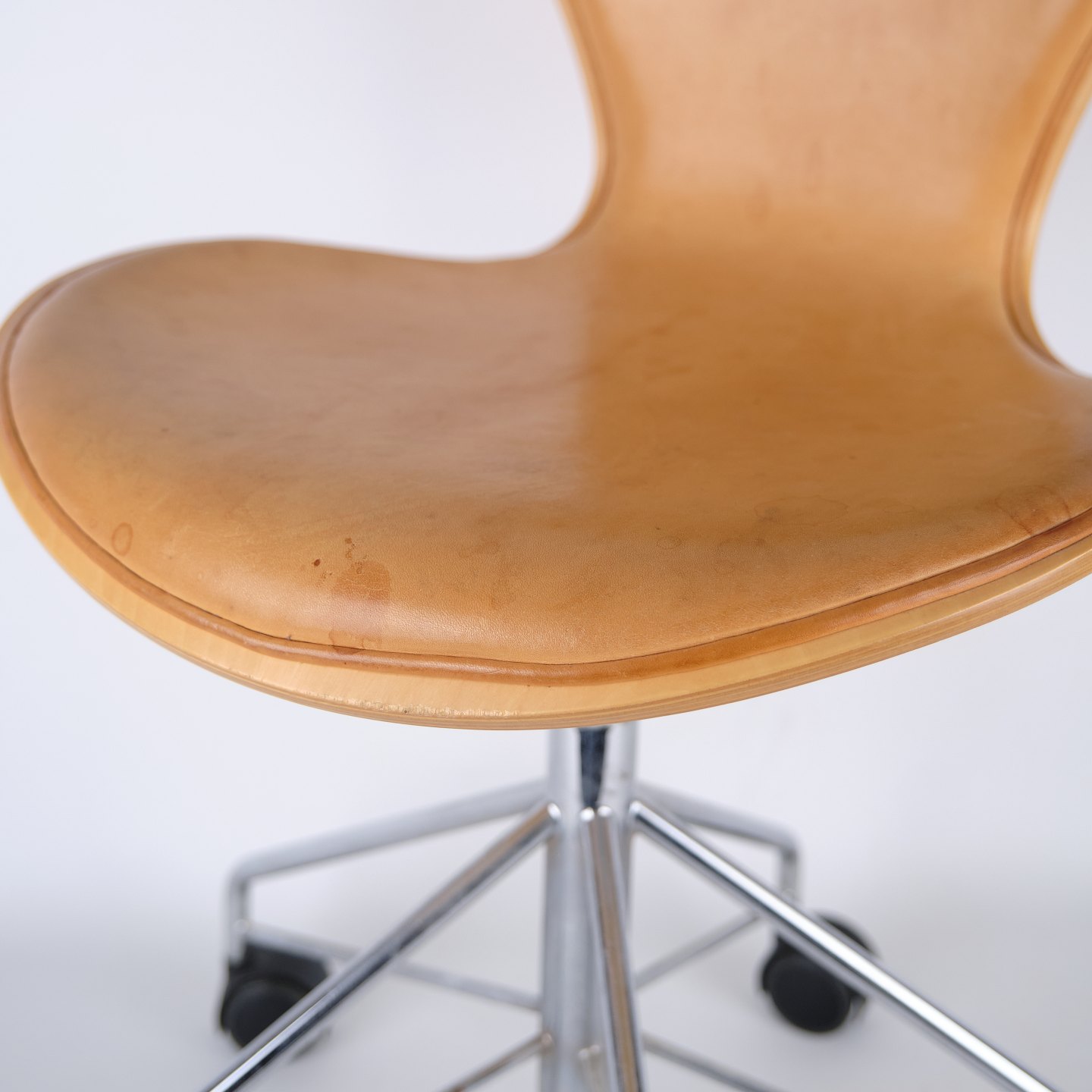Syver Kontorstol - Model 3117 - Patineret Naturlæder - Drejefunktion - Arne Jacobsen - Fritz Hansen