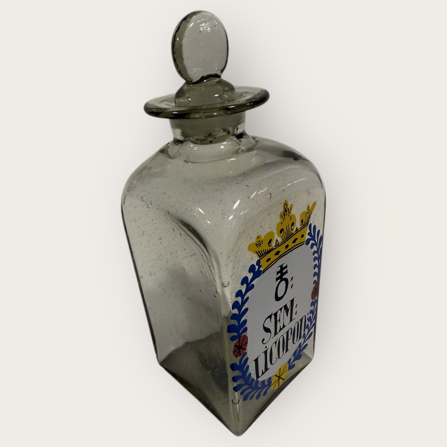 Holmegaard Apothekerflasche von 1977, Sem Licopod, Maße: 17,5 x 6,5 x 6,5 cm, die Flaschen sind mundgeblasene Kopien von originalen alten Apothekerflaschen, signiert Hg.Lager: 2