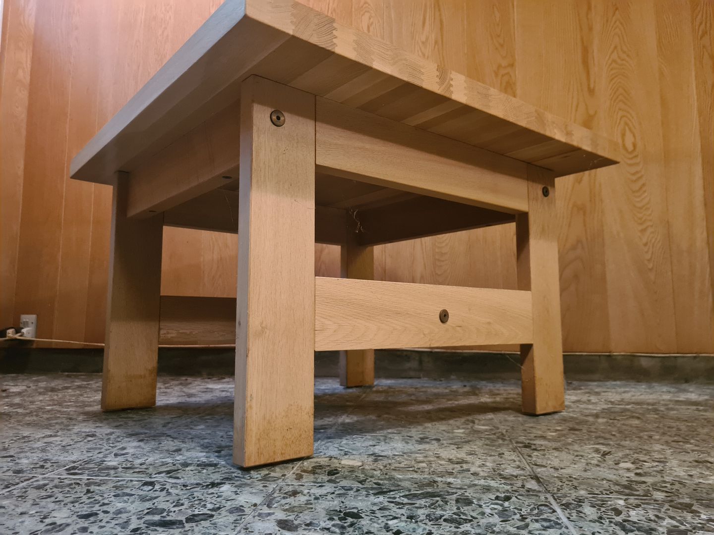 Kvadratisk lampebord fra 1970´erne i massiv eg. Formgivet hos Laboremus i Viborg. Fremstår pænt og velholdt uden nævneværdige brugsspor.Højde 49 cm. Længde 75 cm. Bredde 75 cm.