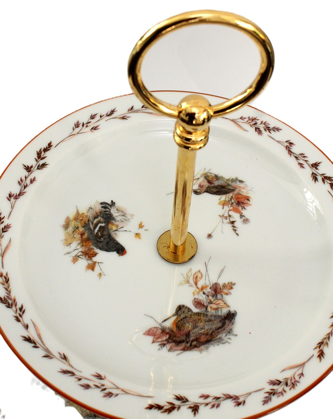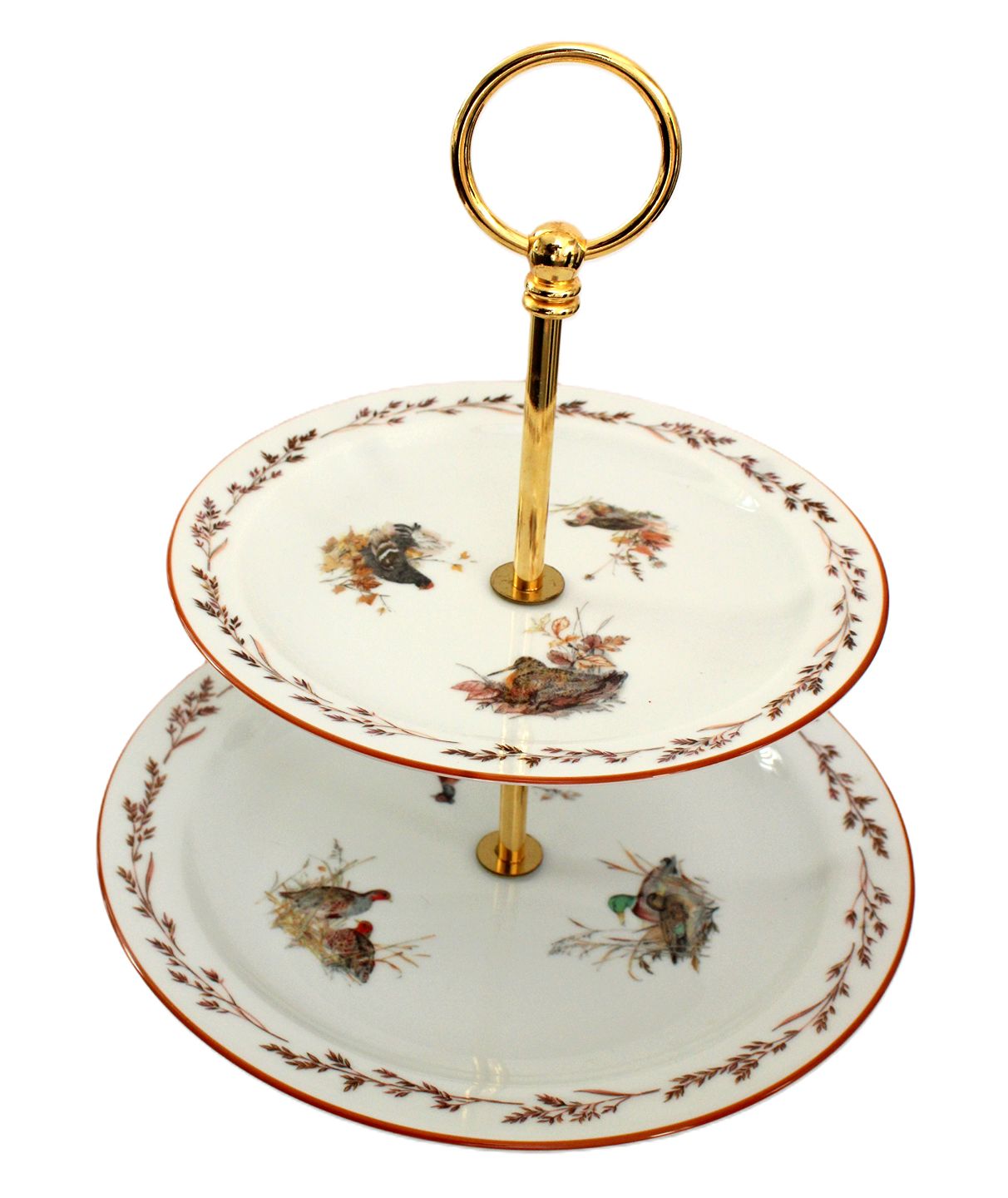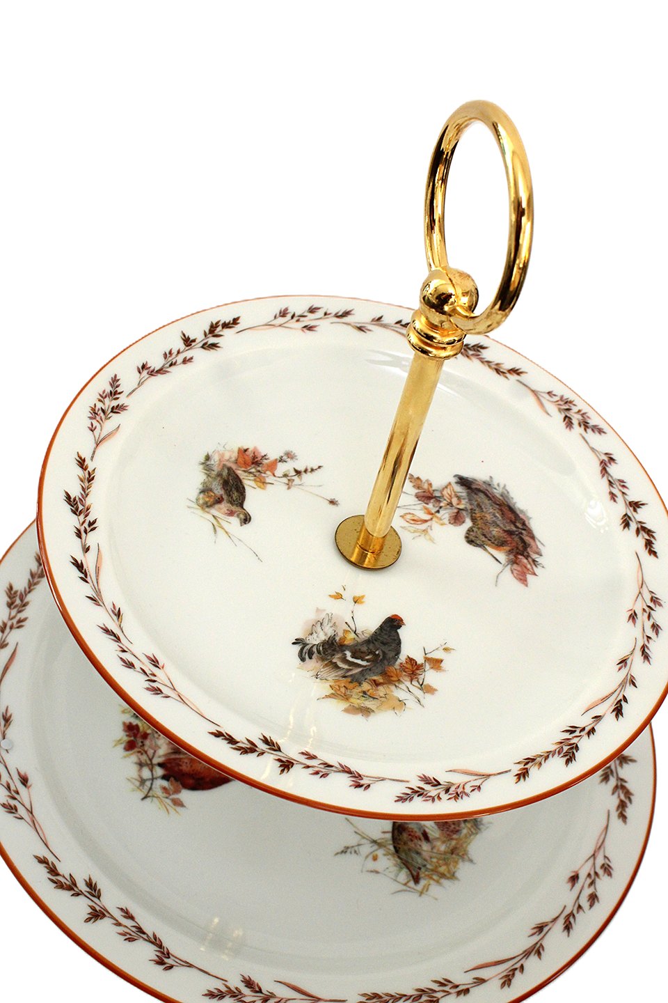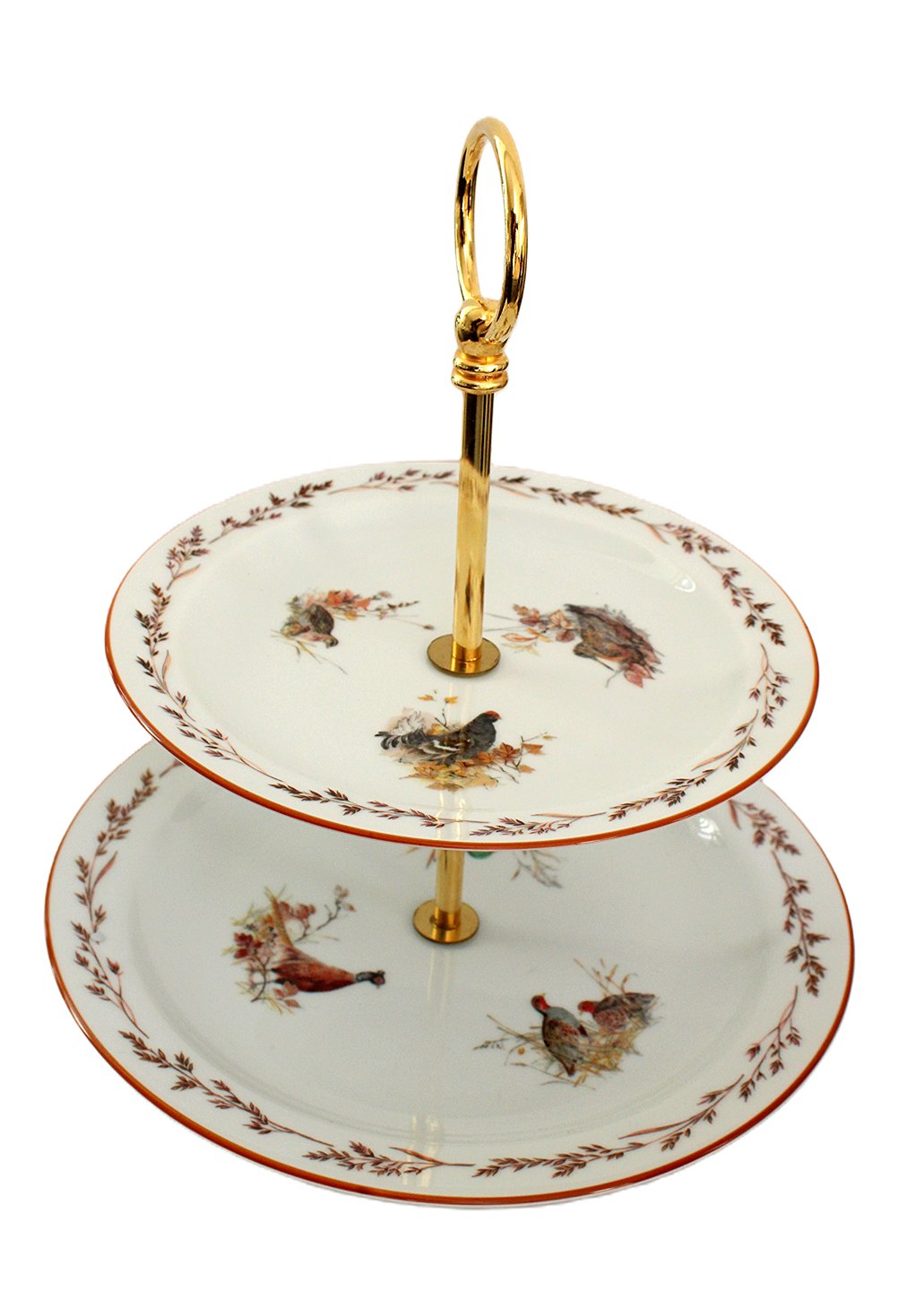 Højde 26,5 cm. Nederste tallerken 24 cm. Øverste tallerken 19 cm. Pris: 1100 kr. stk. Lager: 1