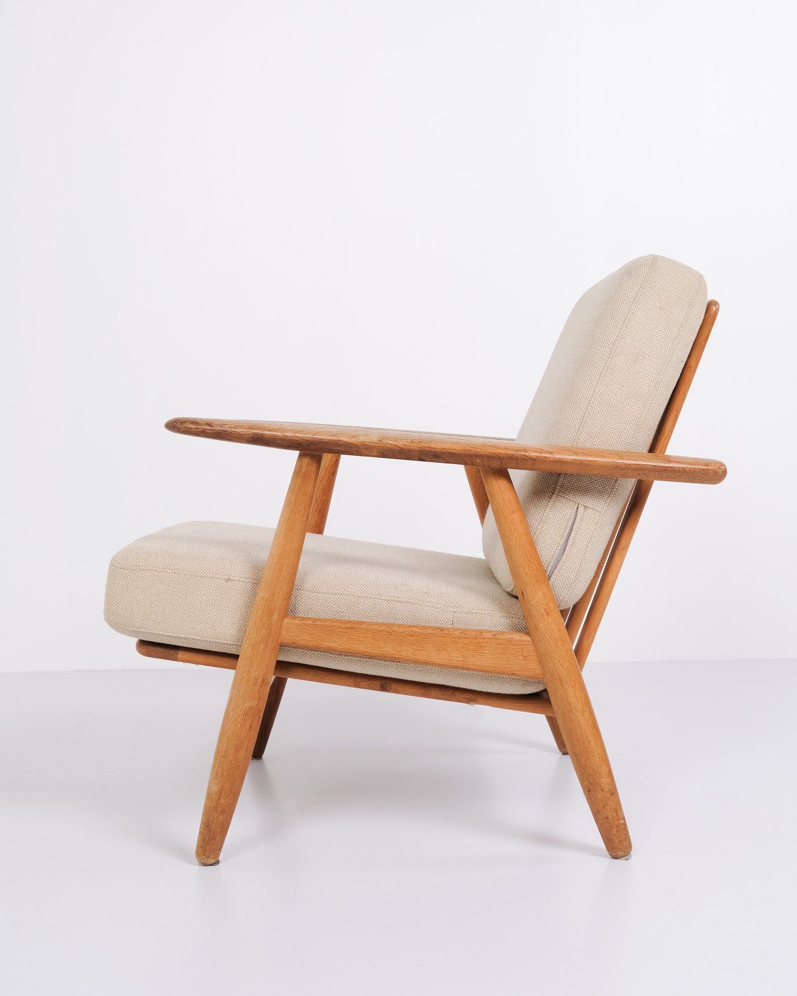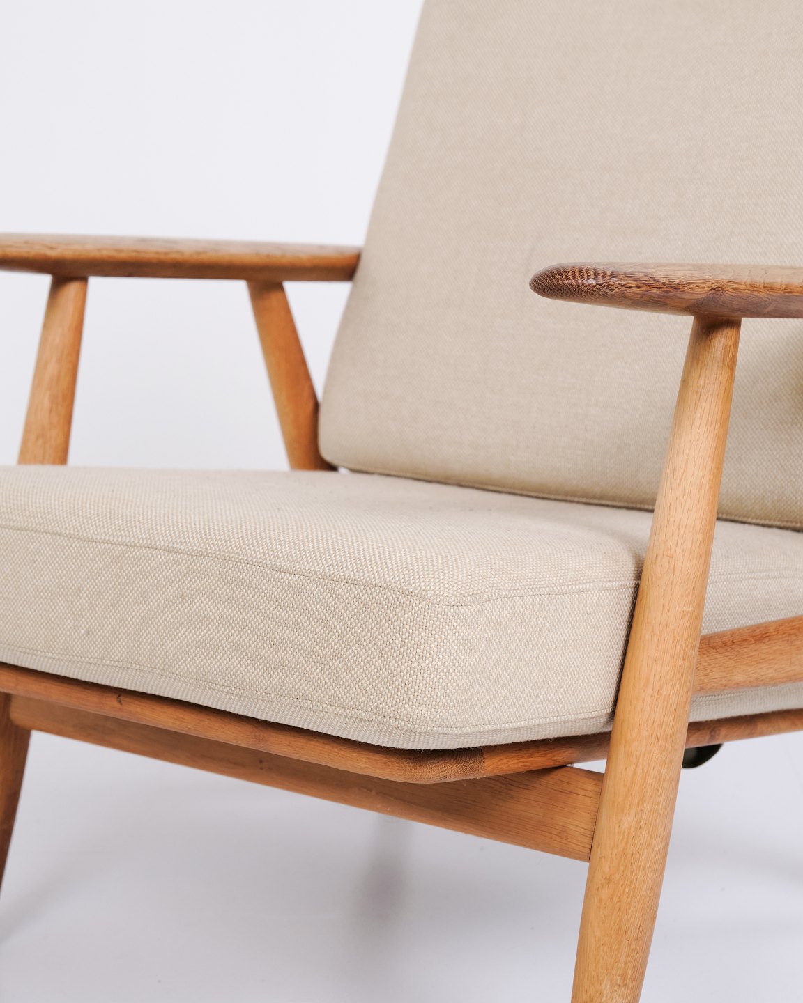 Et Par "Cigar" Lænestole - Model GE 240 - Egetræ & Lyst Stof - Hans J. Wegner - Getama - 1960erneBeschreibung: