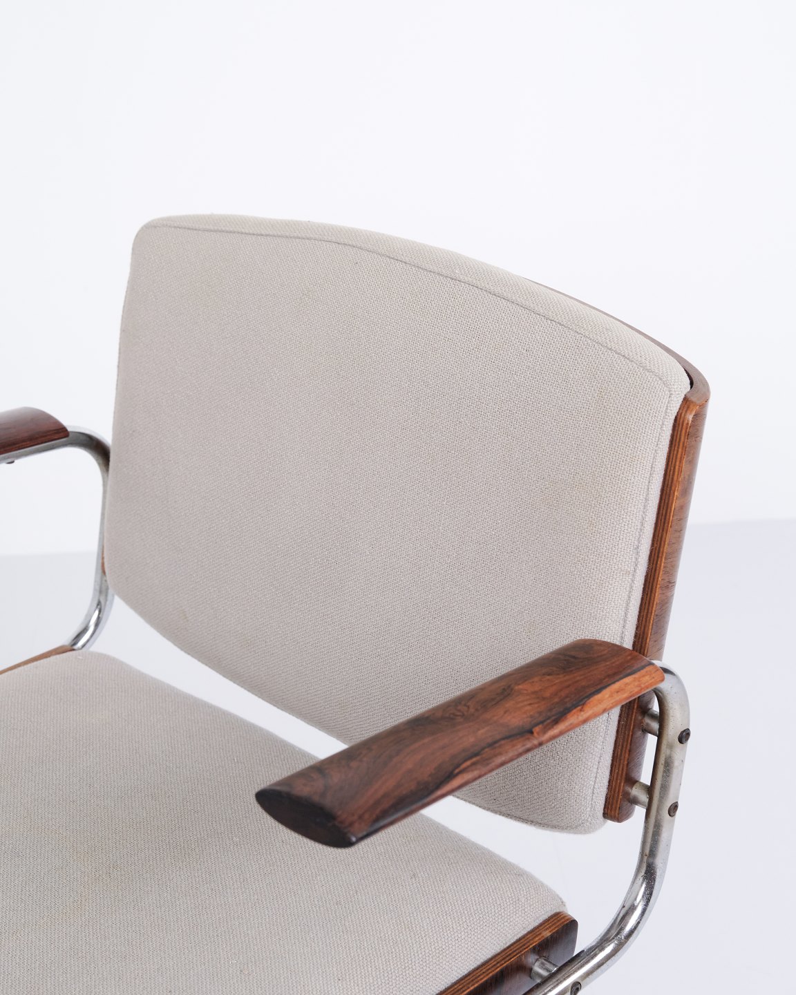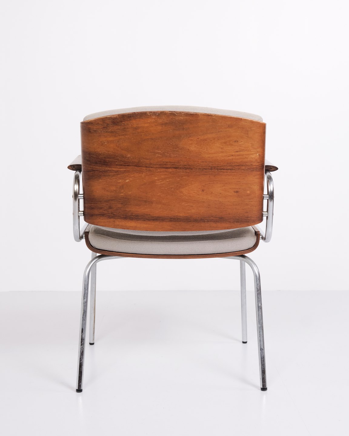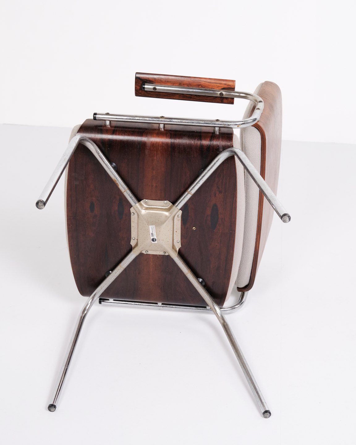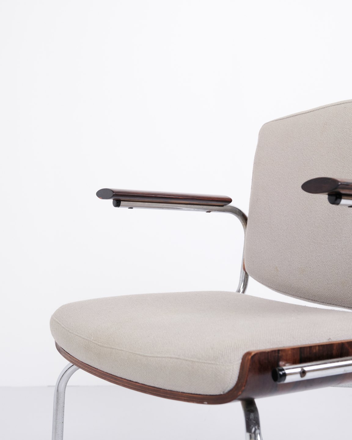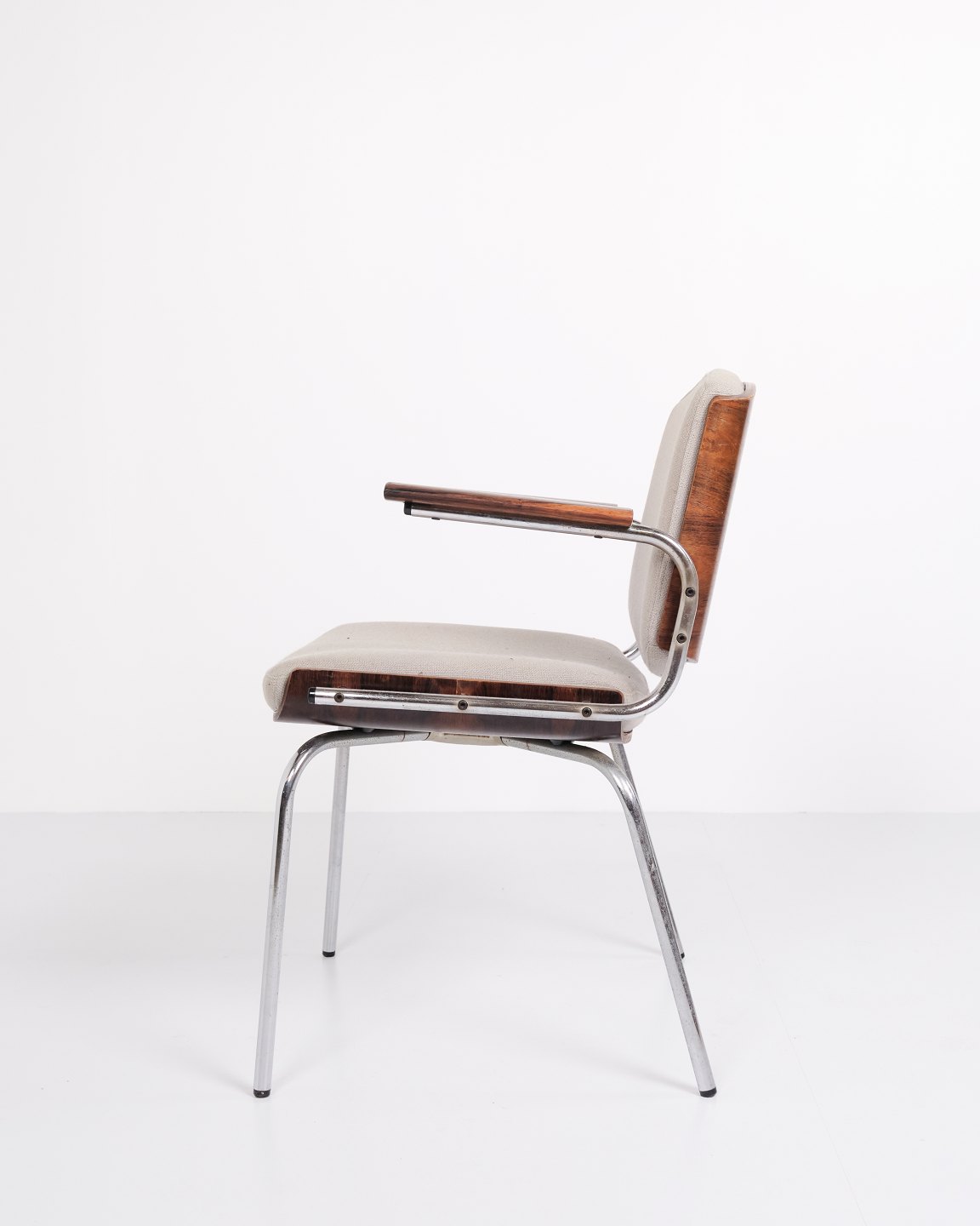 Sæt af fire Duba konferencestole i palisander og lysegråt stof. Dansk design fra 1960’erne.— Oprindelse: Danmark