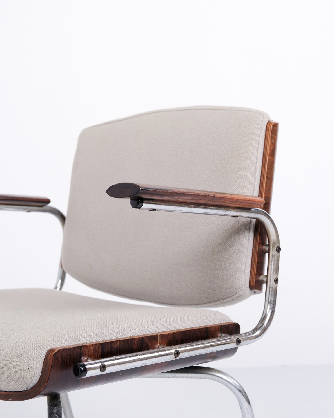 Sæt Af Fire Konference Stole - Palisander & Lysegråt Stof - Duba - 1960erneBeschreibung: