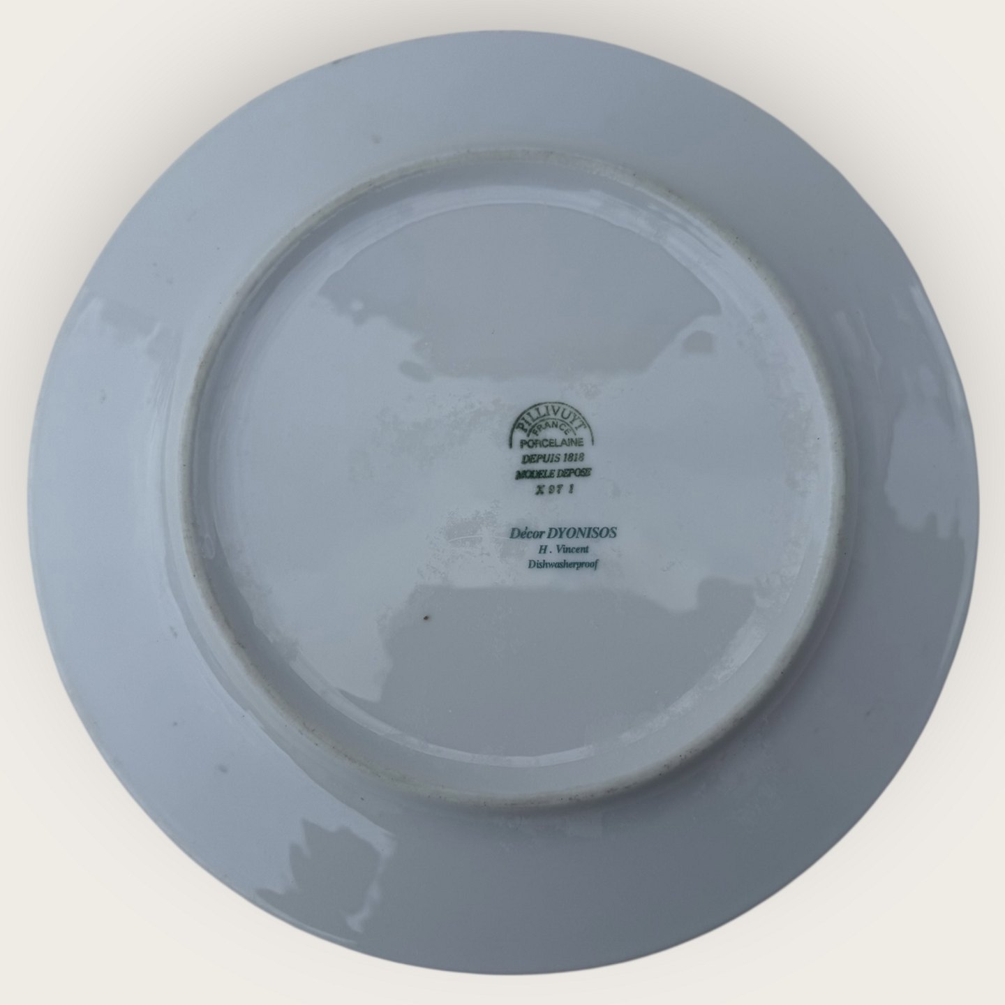 Pillivuyt, Decor Dyonisos, Teller, 21,8 cm Durchmesser *Gebrauchter Zustand*Lager: 4