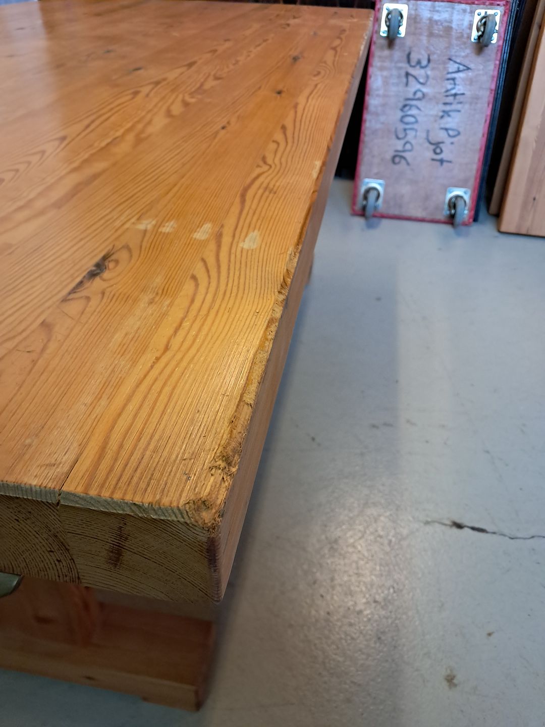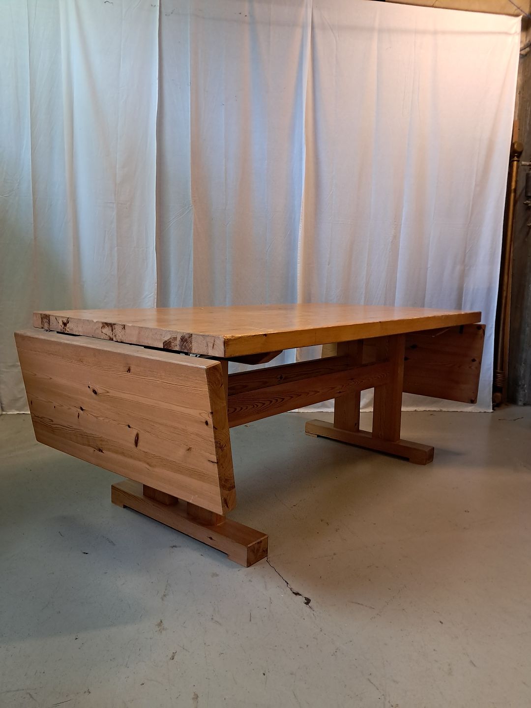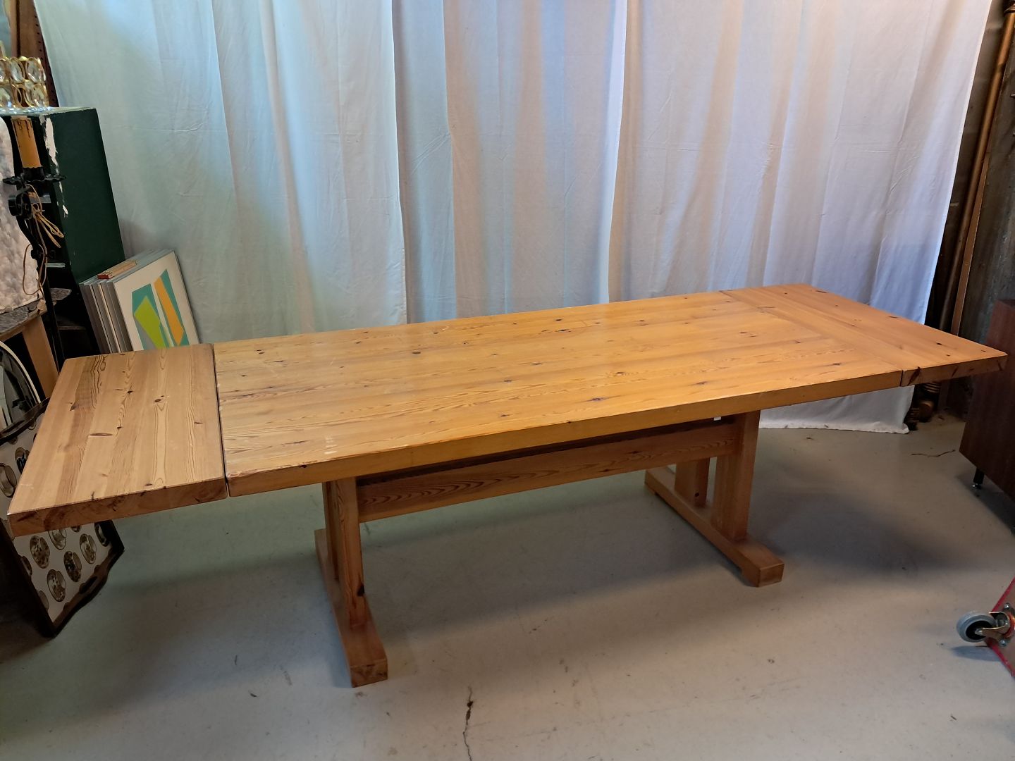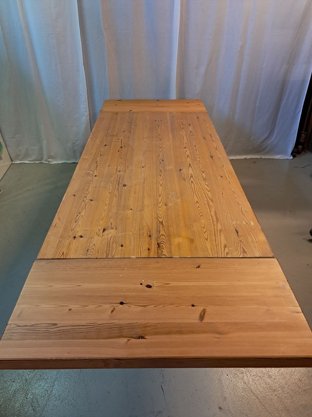 Spisebord i massivt fyrretræ med 2 klapper, fra 1980erne.Det har brugsspor.