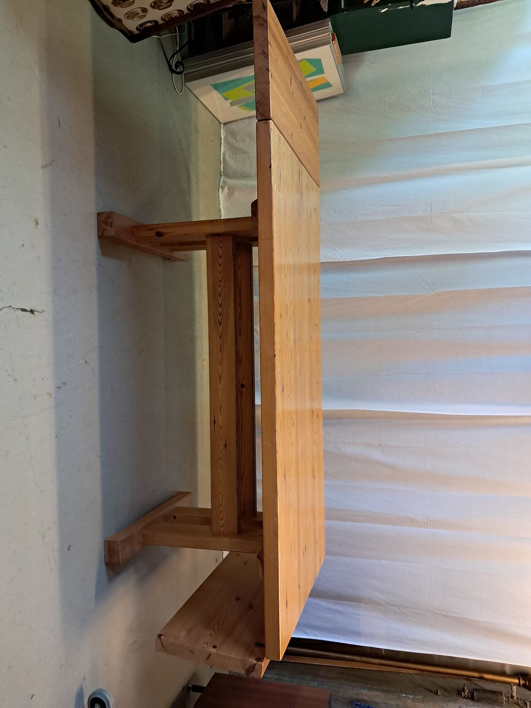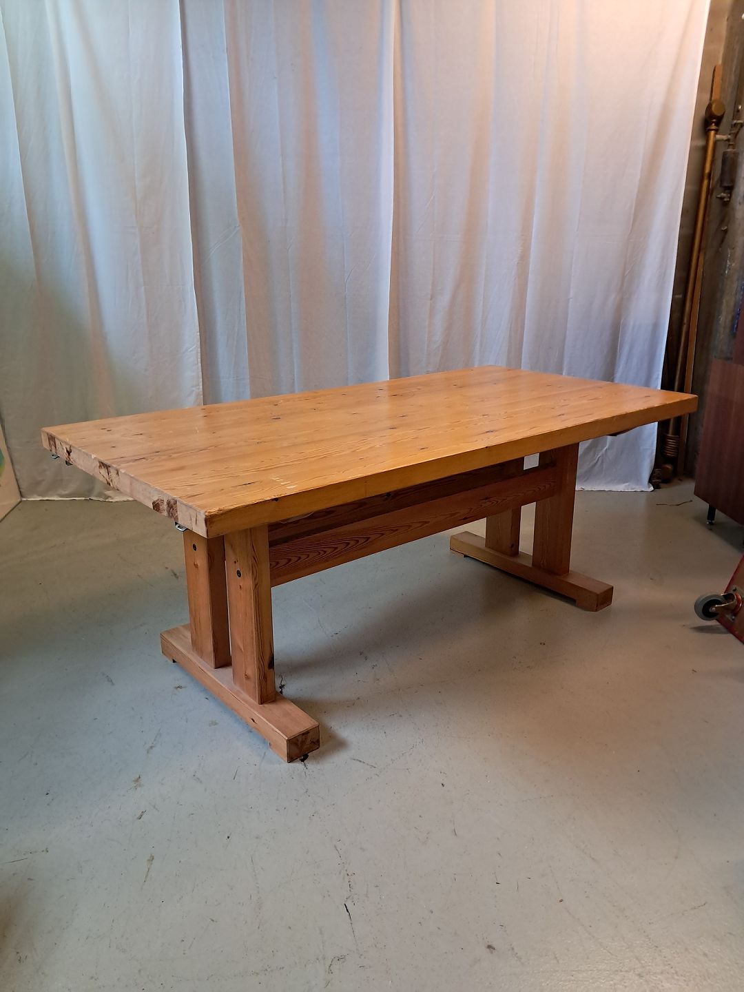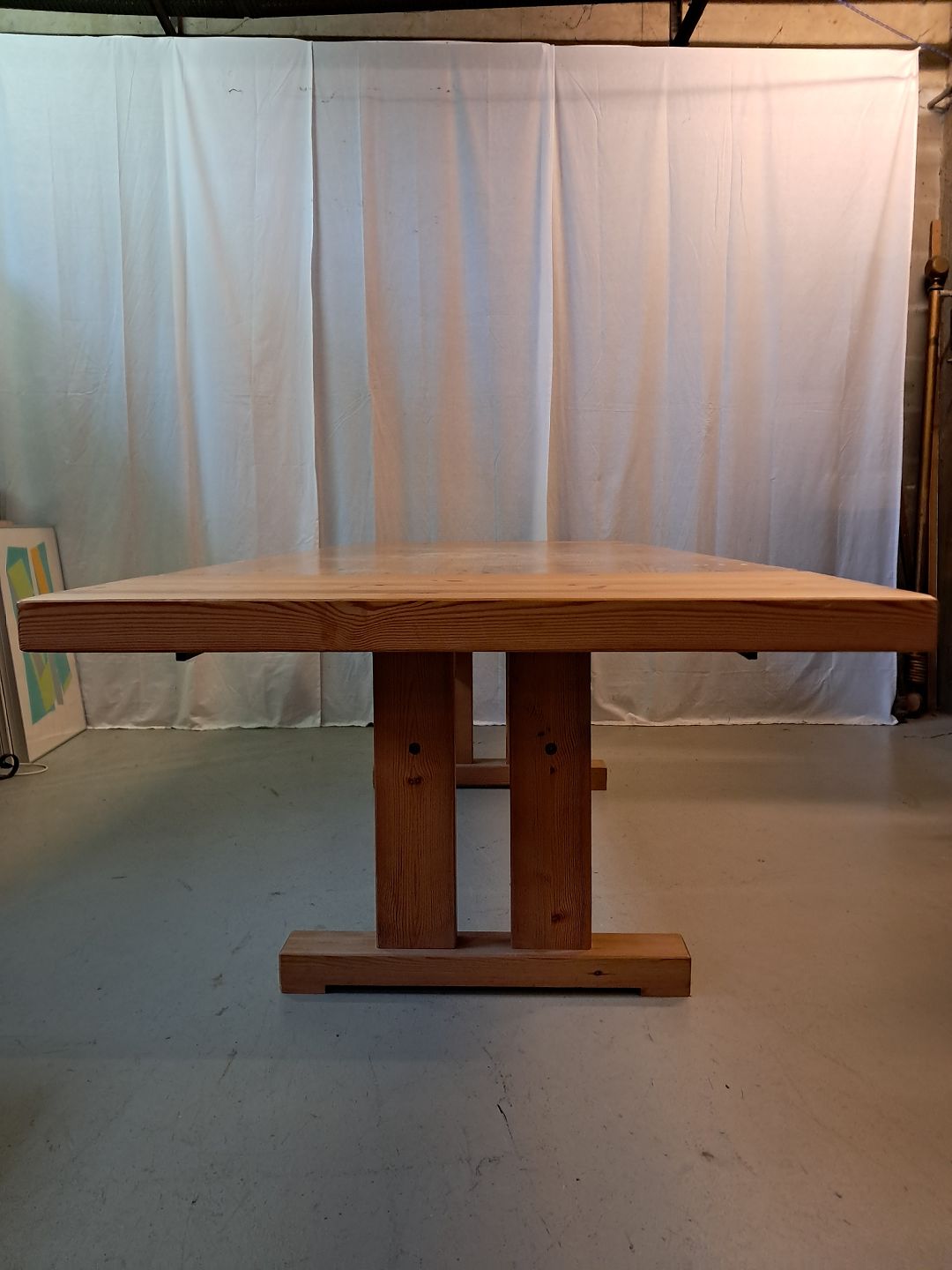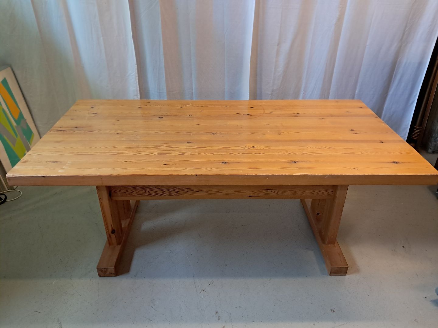 Spisebord i massivt fyrretræ med 2 klapper, fra 1980erne.Det har brugsspor.