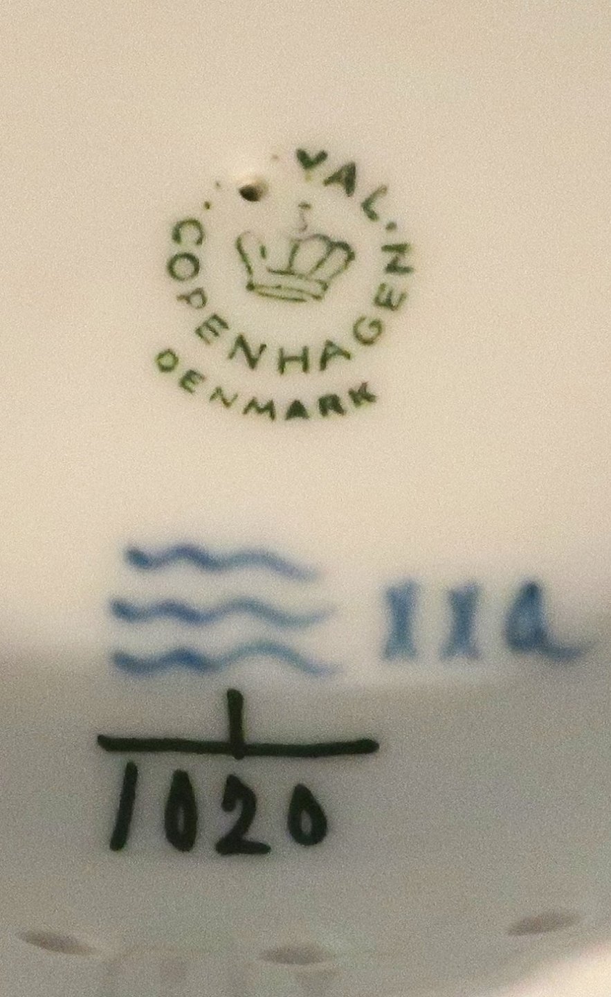 Königliches Kopenhagen. Musselmalet, vollspitze. Kuchenschale auf Fuß. Modell 1020. Höhe 14,5 cm. Durchmesser 20,5 cm. (1 Wahl)