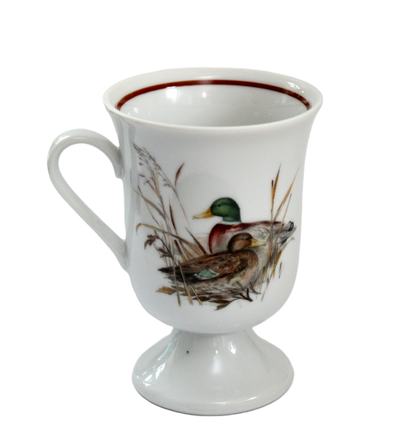 Jagtstellet designet af Mads Stage for Imerco. Irish Coffee krus på fod. Gråand. Højde 11 cm. Diameter 8 cm. Pris: 175 kr. stk. Lager: 3 Händler