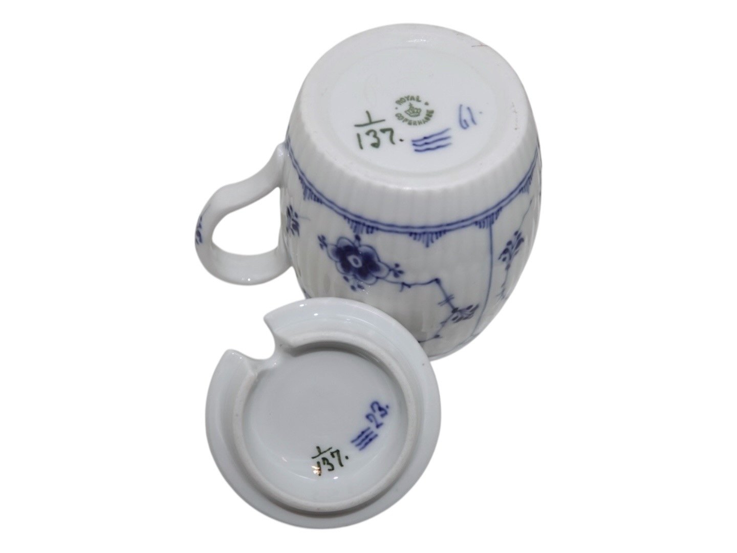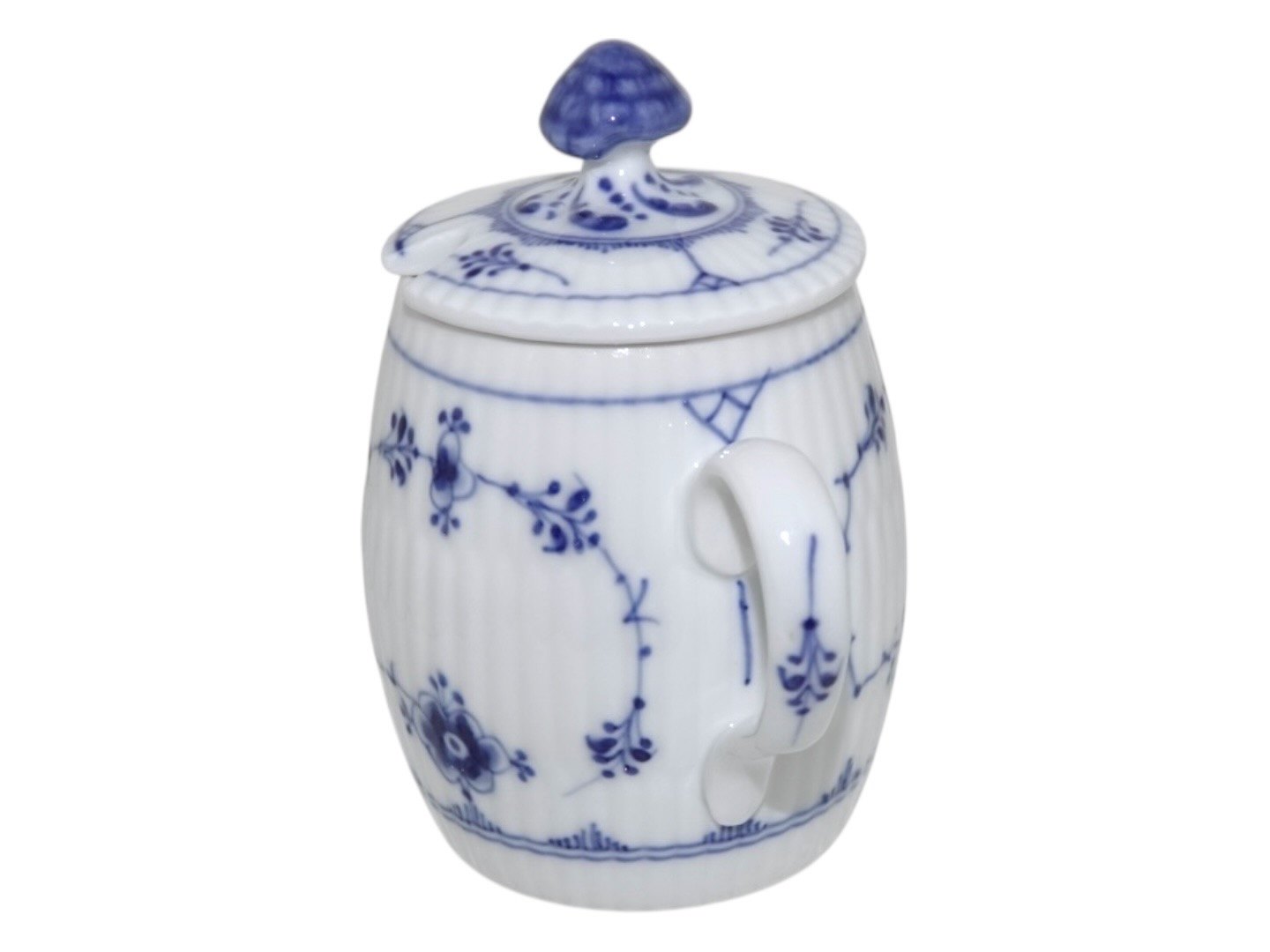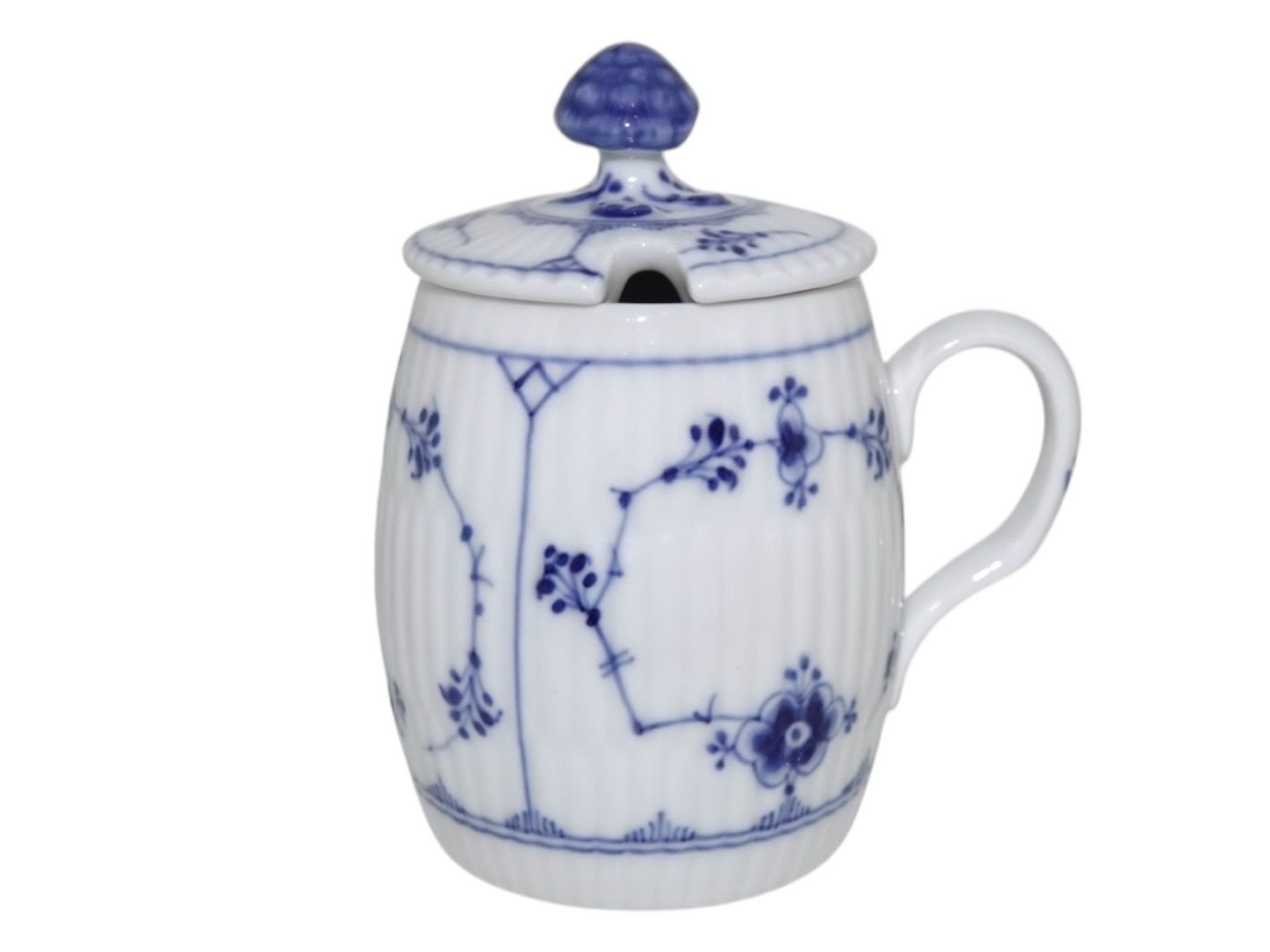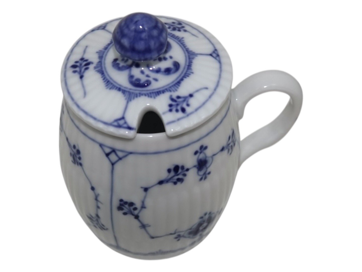 Royal Copenhagen Musselmalet Riflet, sennepskrukke med låg.