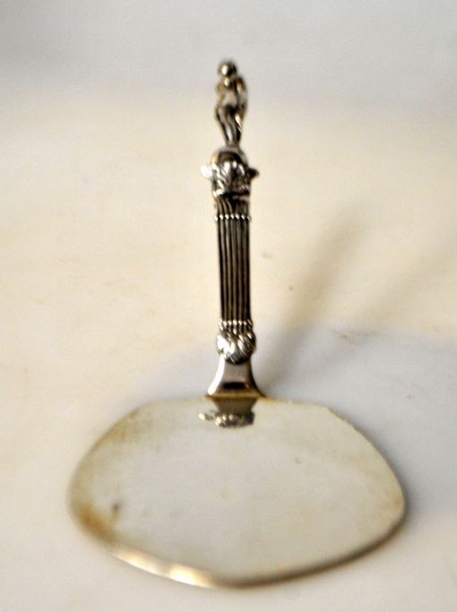 Reppien sølv spatel, 1952, Skanderborg, Danmark. Skaft med stående nøgen kvinde. Stemplet. L.: 15 cm. Vægt.: 30 gram.Perfekt stand!