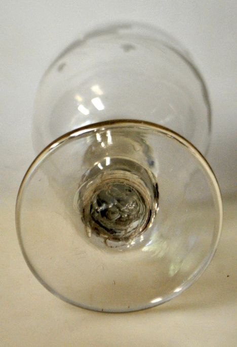 Weinglas mit Eichenblattschliff, Dänemark, 19. Jahrhundert. Stiel mit Knopf. Schliff mit 4 Blättern und 8 Eicheln oben und unten. H.: 11 cm.Bestellnummer: 28263