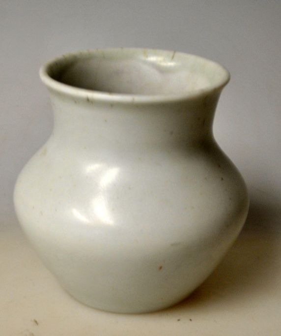 Royal Copenhagen stentøjs vase - prøveeksemplar, unika. 20. årh. København, Danmark. Grålig krystal glasur. Stemplet med no. P 65. H.: 9 cm.NB: Sjælden! Antagelig en prøve på jernrød glasur af Leif Lautrup-Larsen og Nils Thorsson.