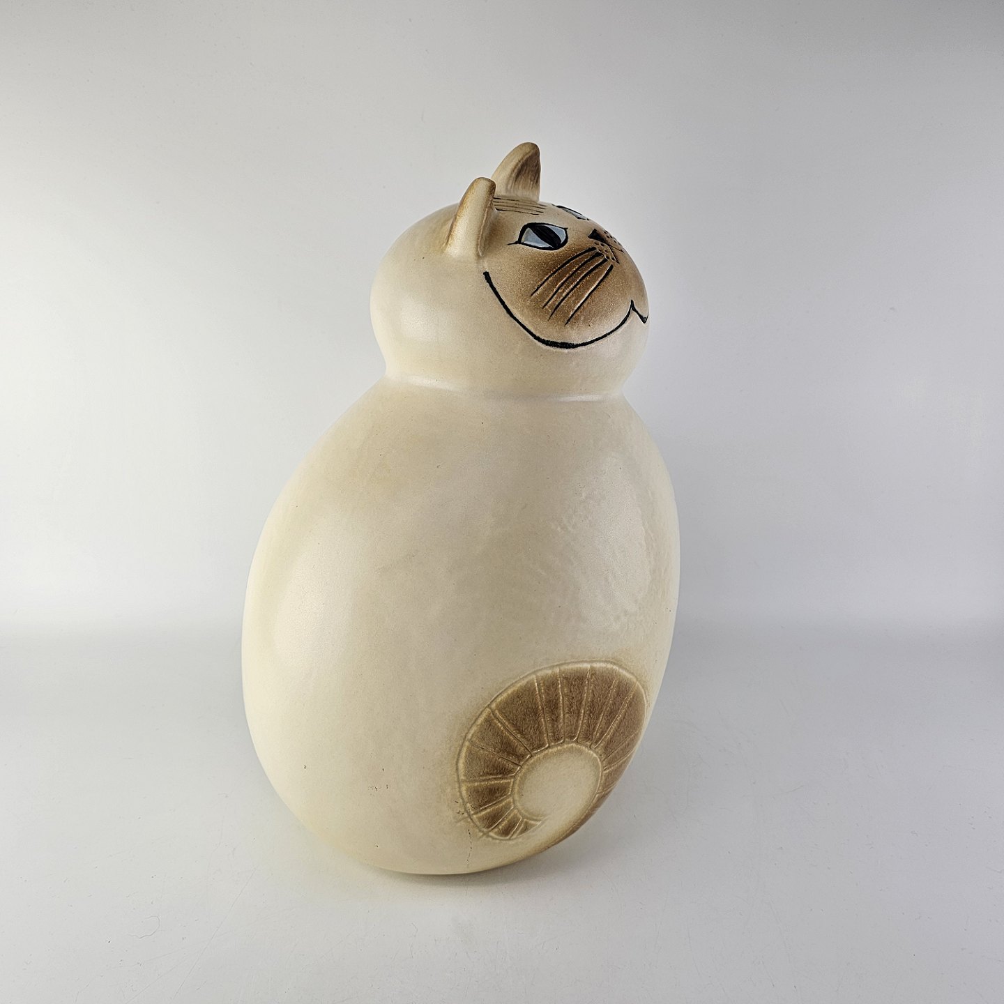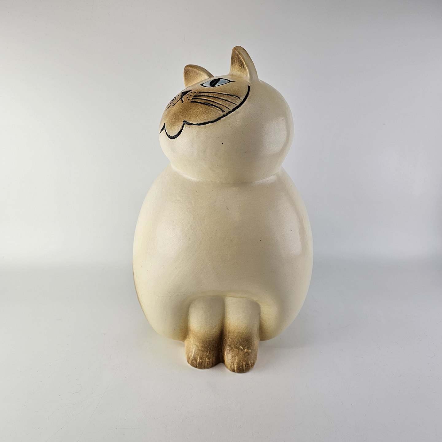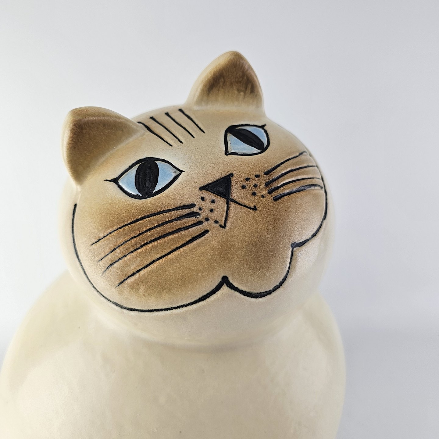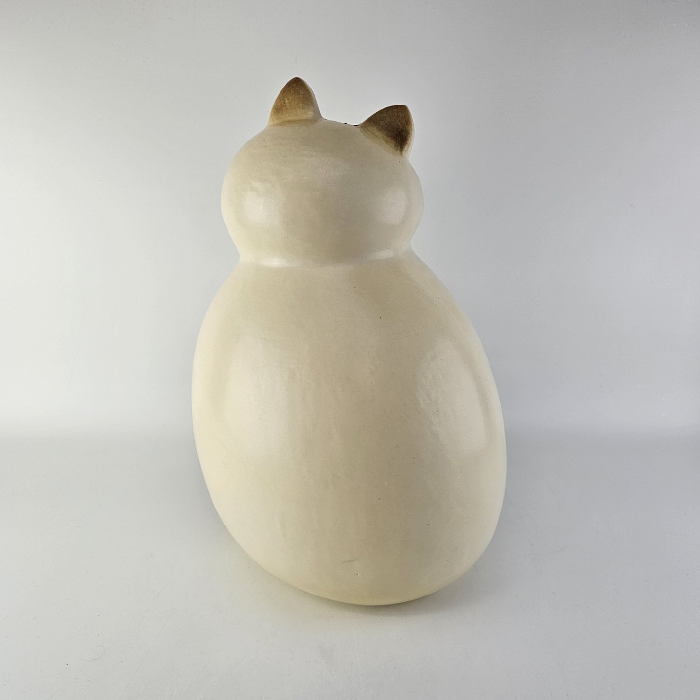 Figur i stentøj med motiv af en lys kat af modellen Mia fra år 2010Formgiver Lisa Larson