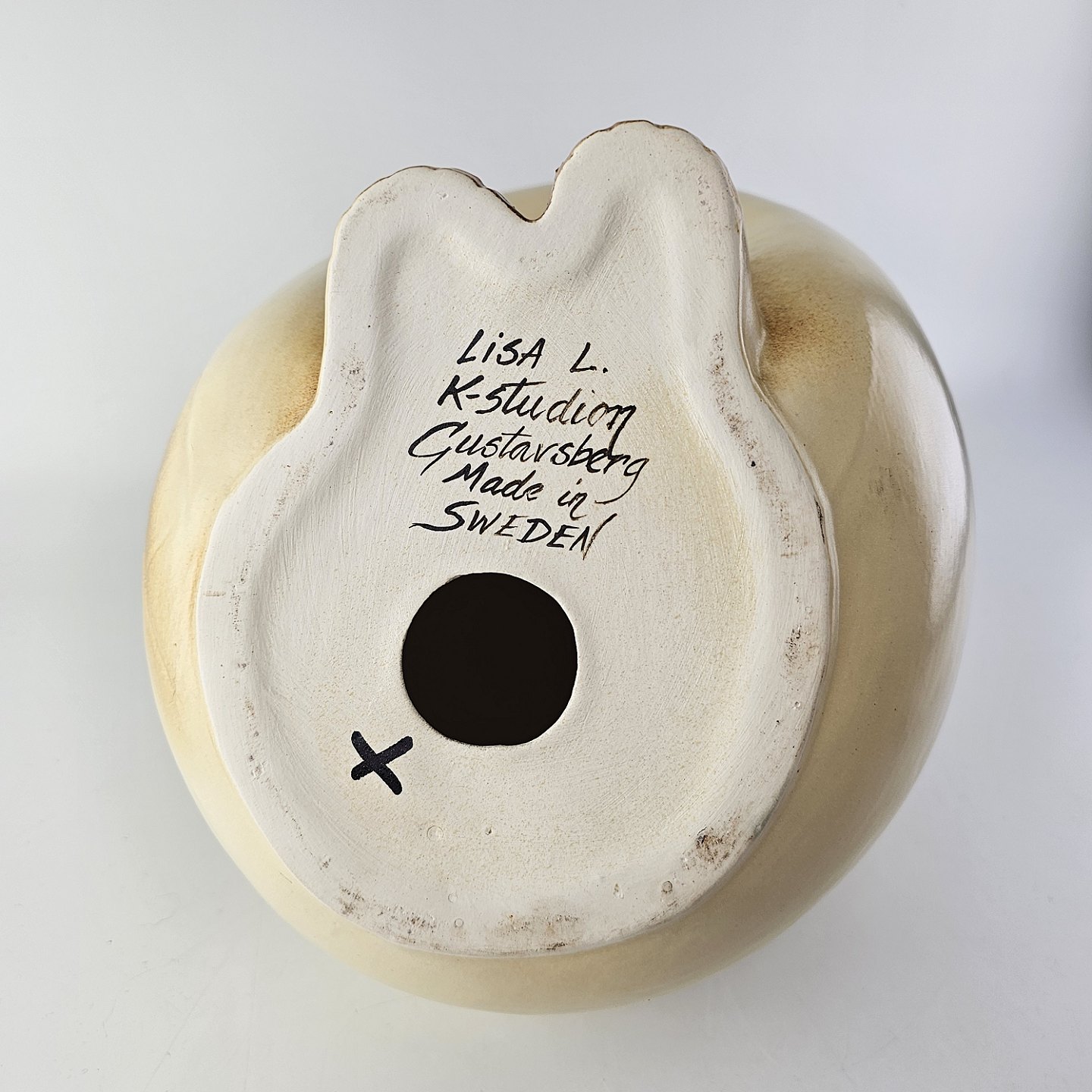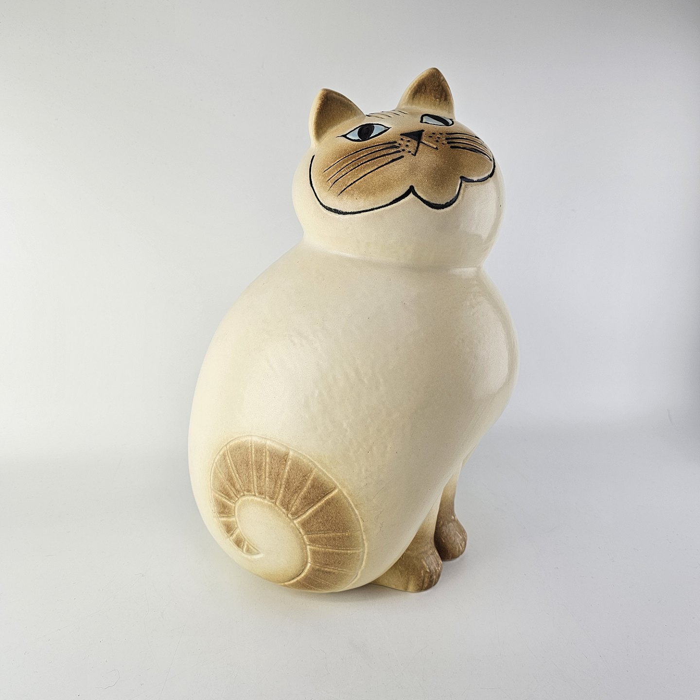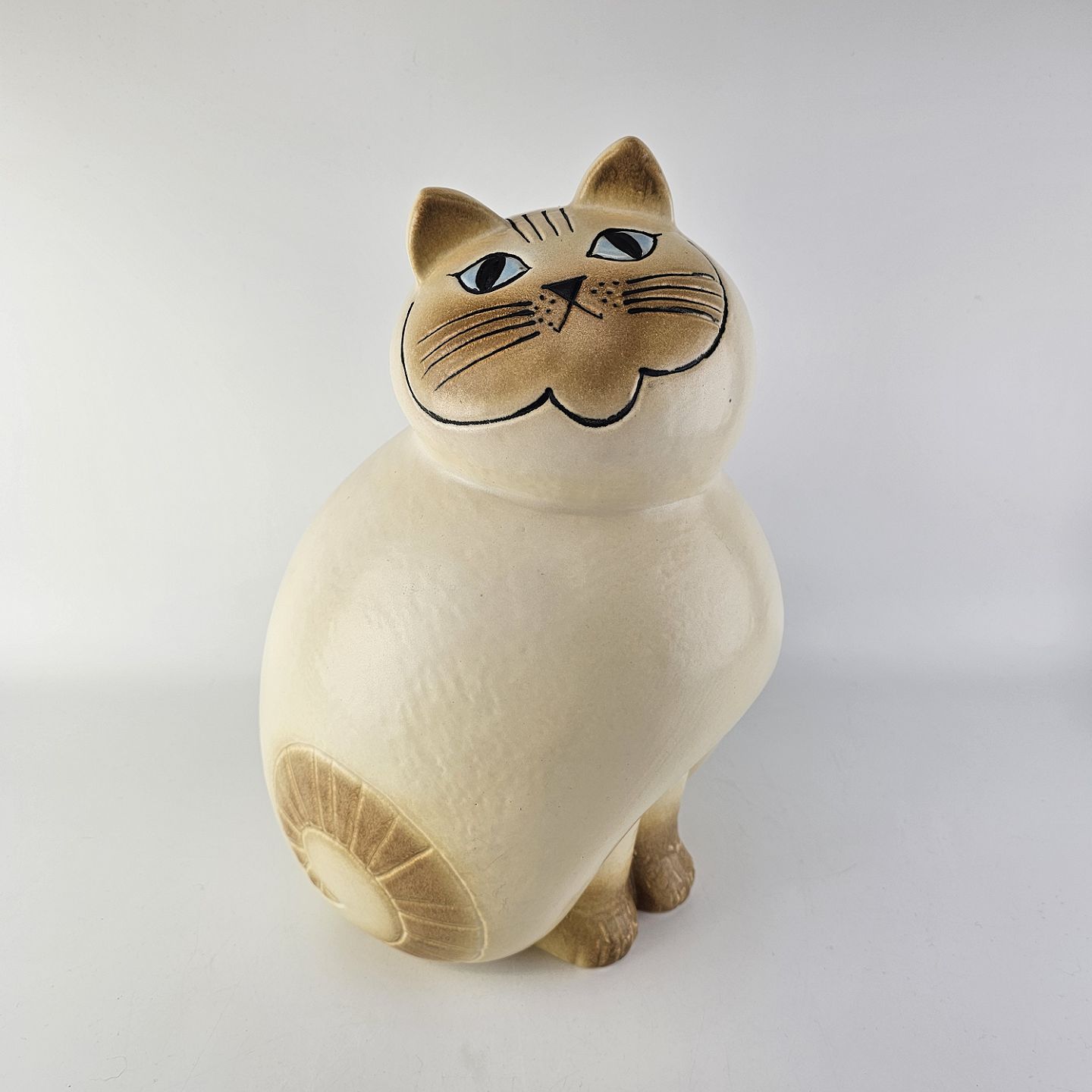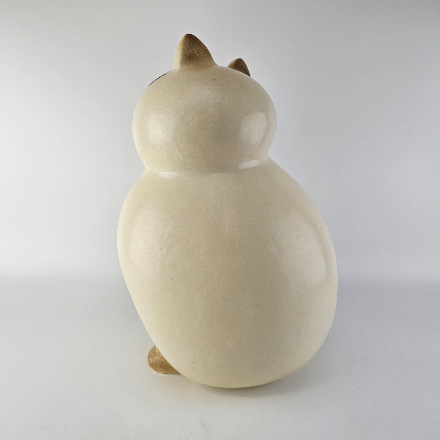 Figur i stentøj med motiv af en lys kat af modellen Mia fra år 2010Formgiver Lisa Larson