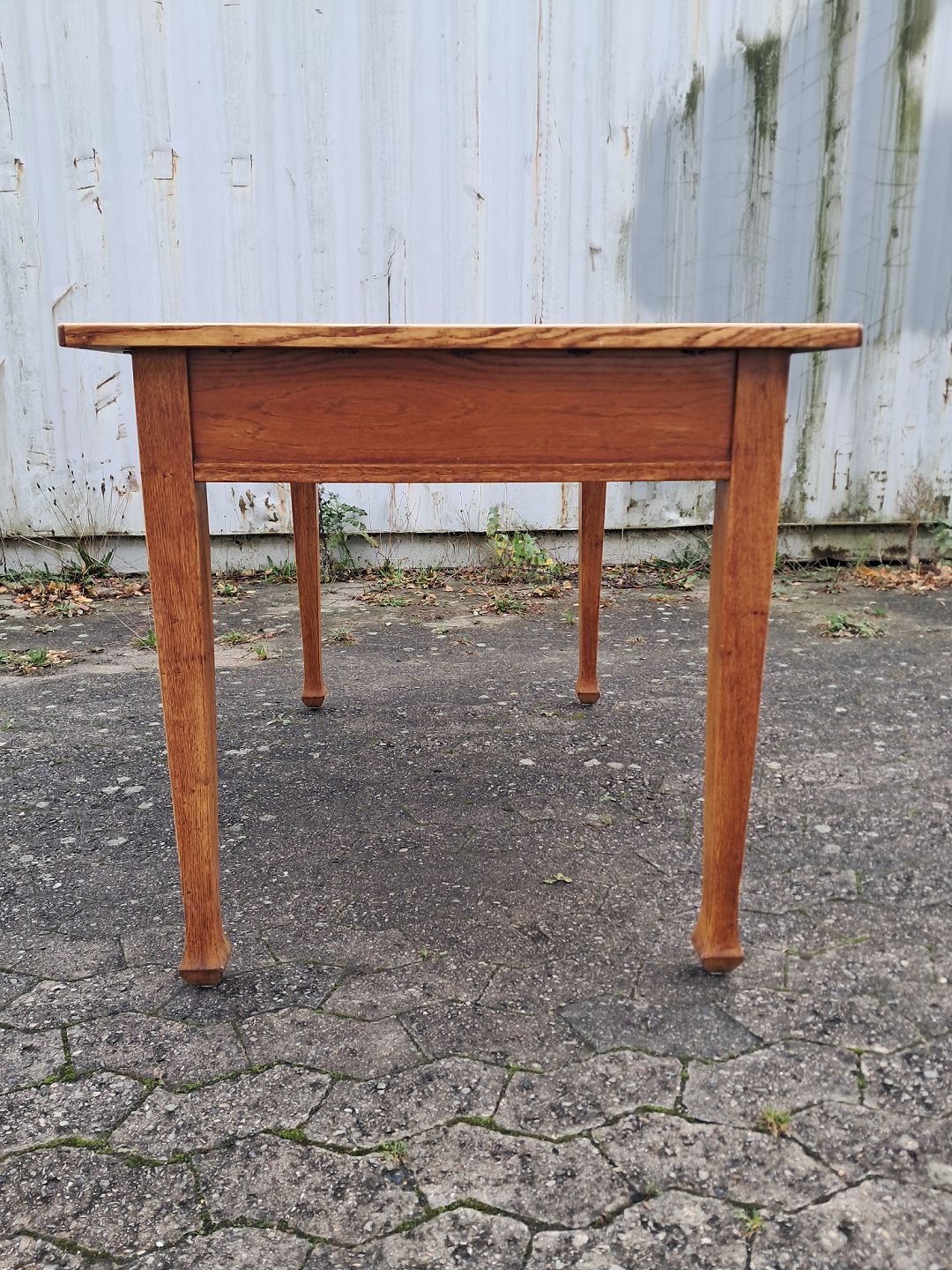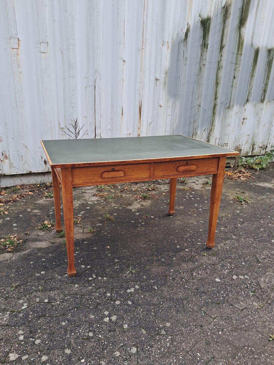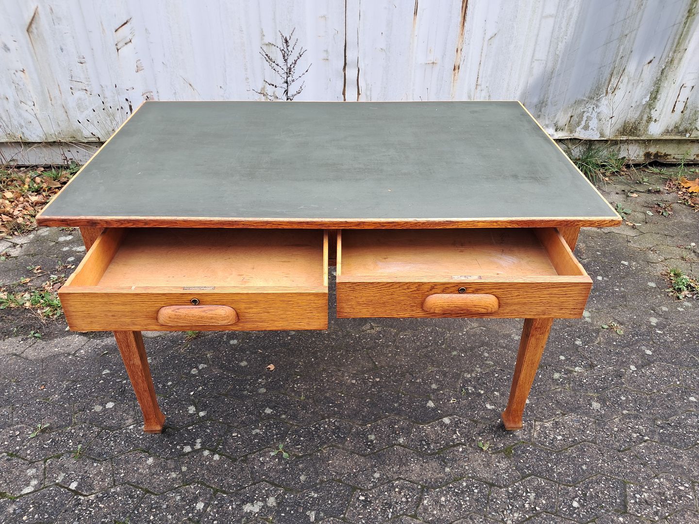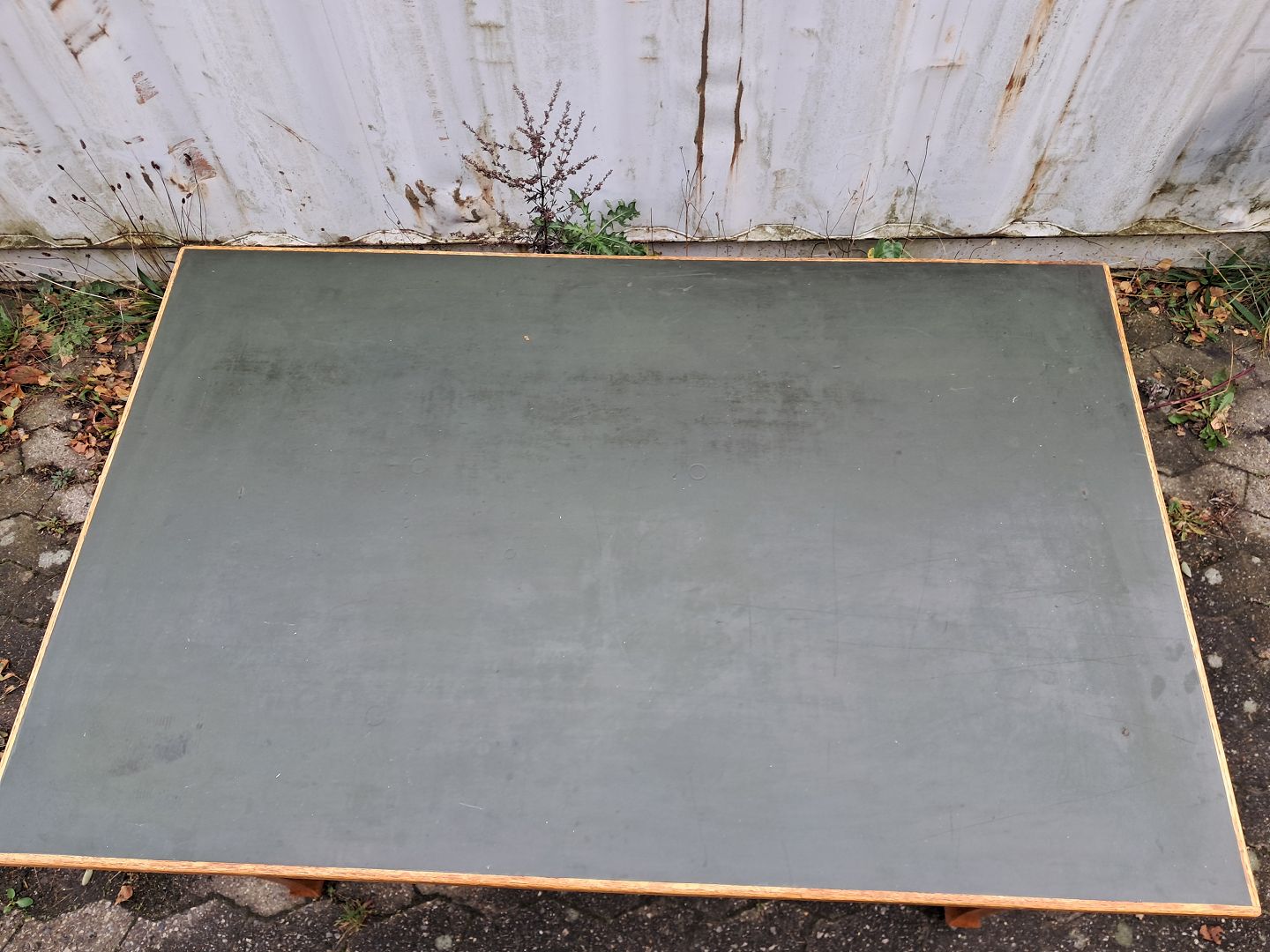 Bord i massivt egetræ med linoleumsplade, fra 1930erne.