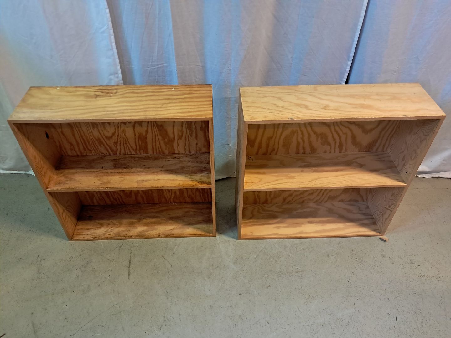 2 Reolkasser i krydsfiner, fra 1990erne.