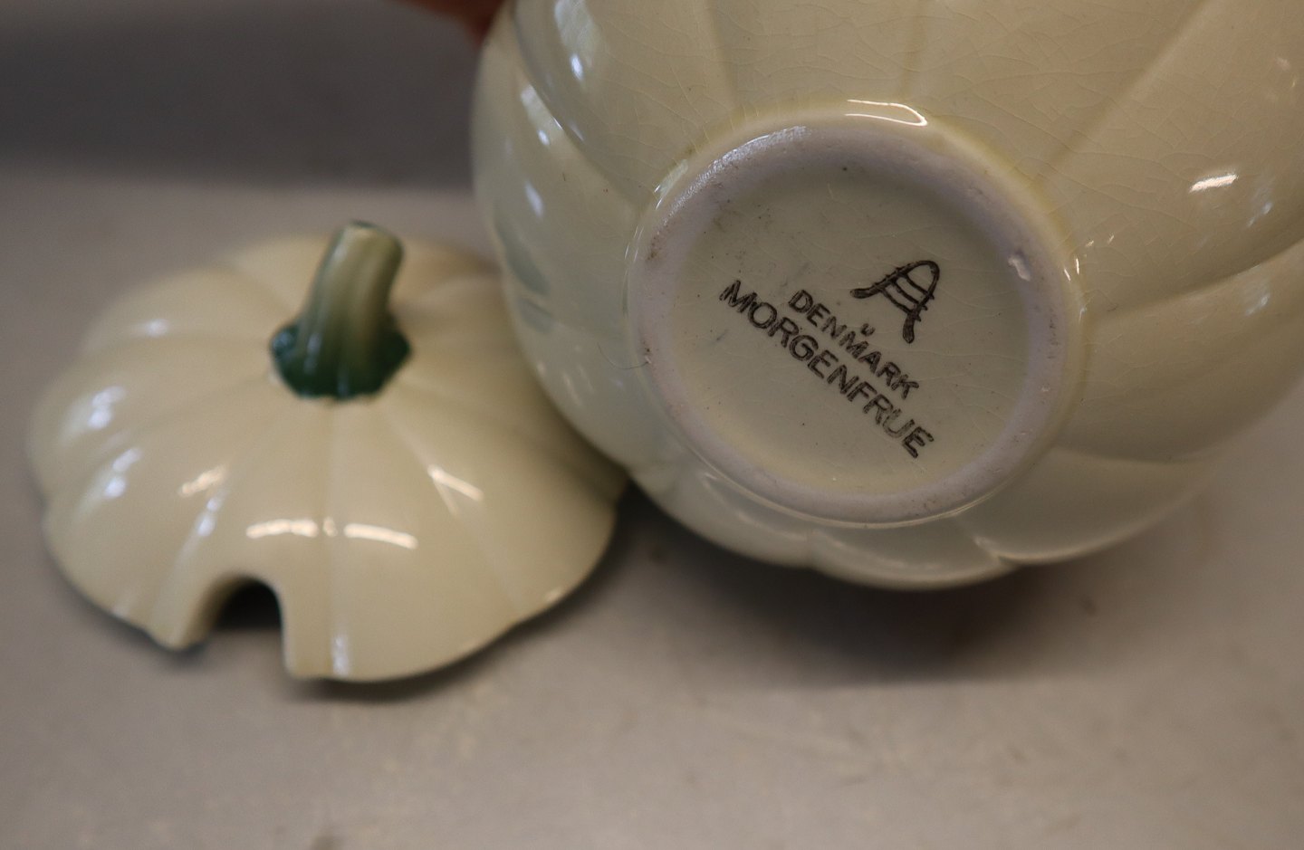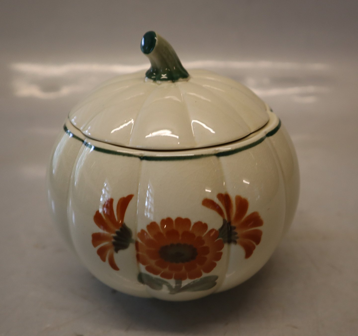 1 stk på lagerGræskarformet Marmeladeskål 11x12.5cm Royal Copenhagen Aluminia fajance Morgenfrue Stellet Sukkerskål