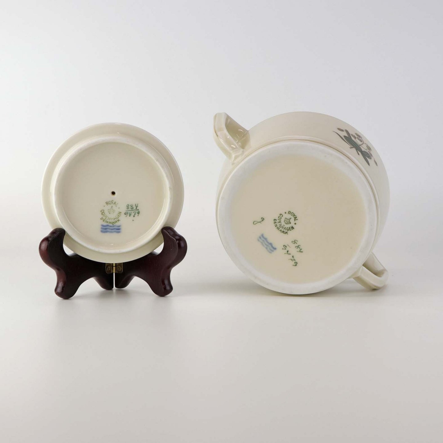 Krukke med låg til sukker i kongelig porcelæn fra stellet Hjertegræs. Nr. 884/9479Formgiver Thorkild Olsen