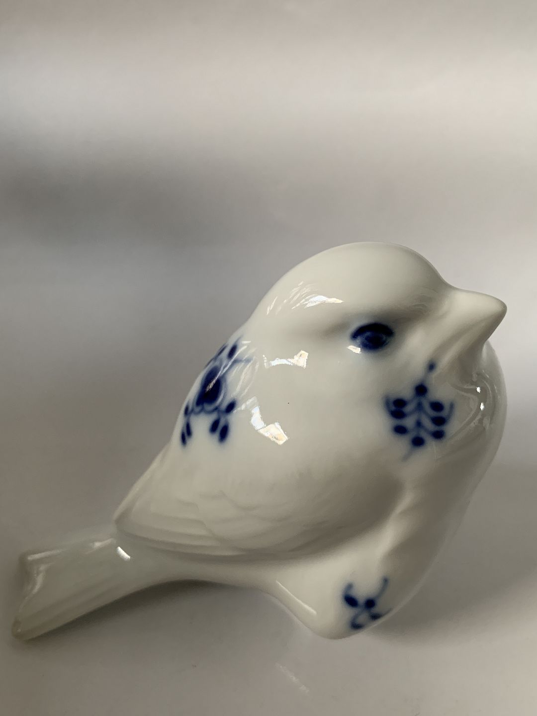 Royal Copenhagen Musselmalet Riflet, figur af fugl (spurv).1. sortering