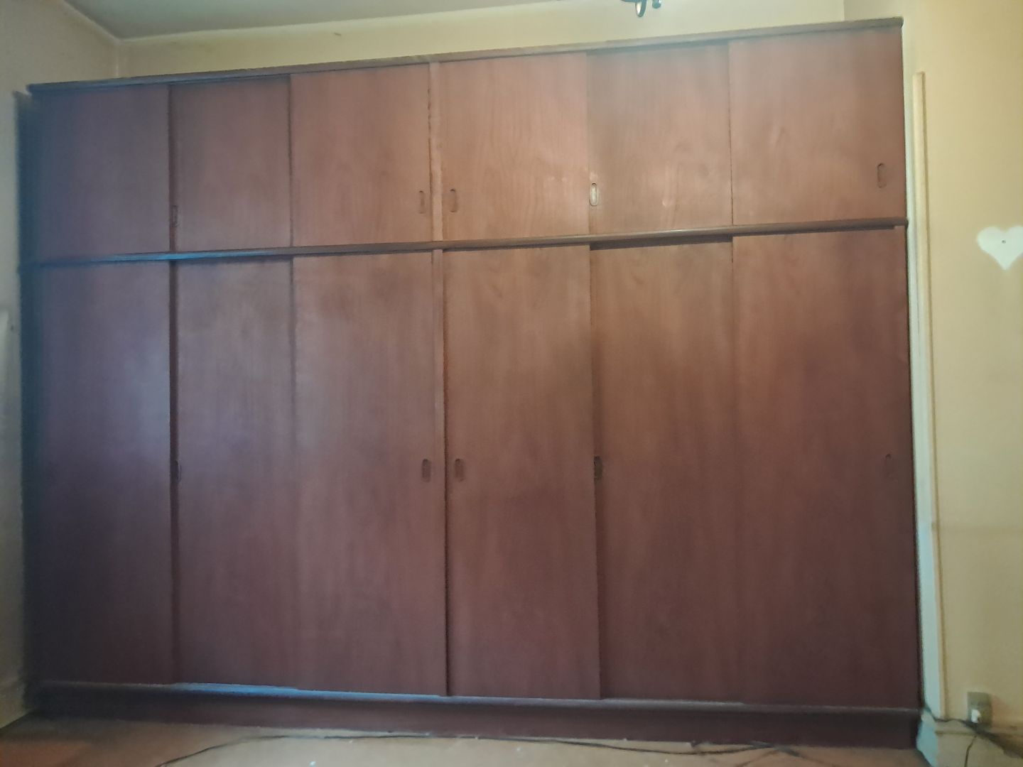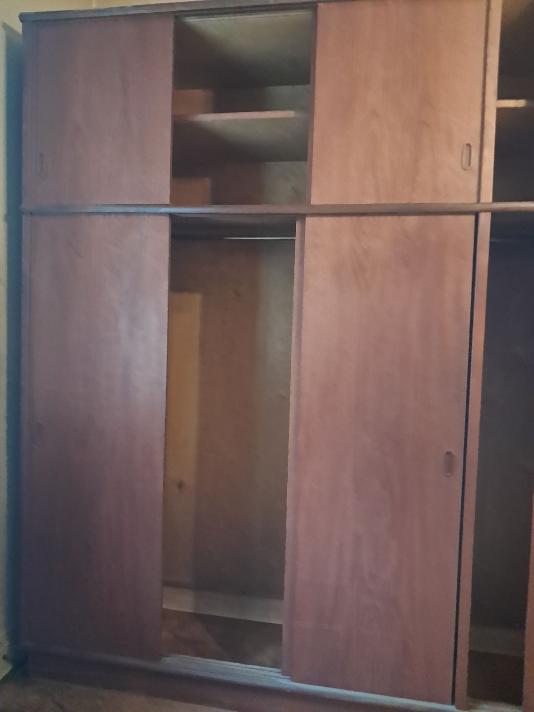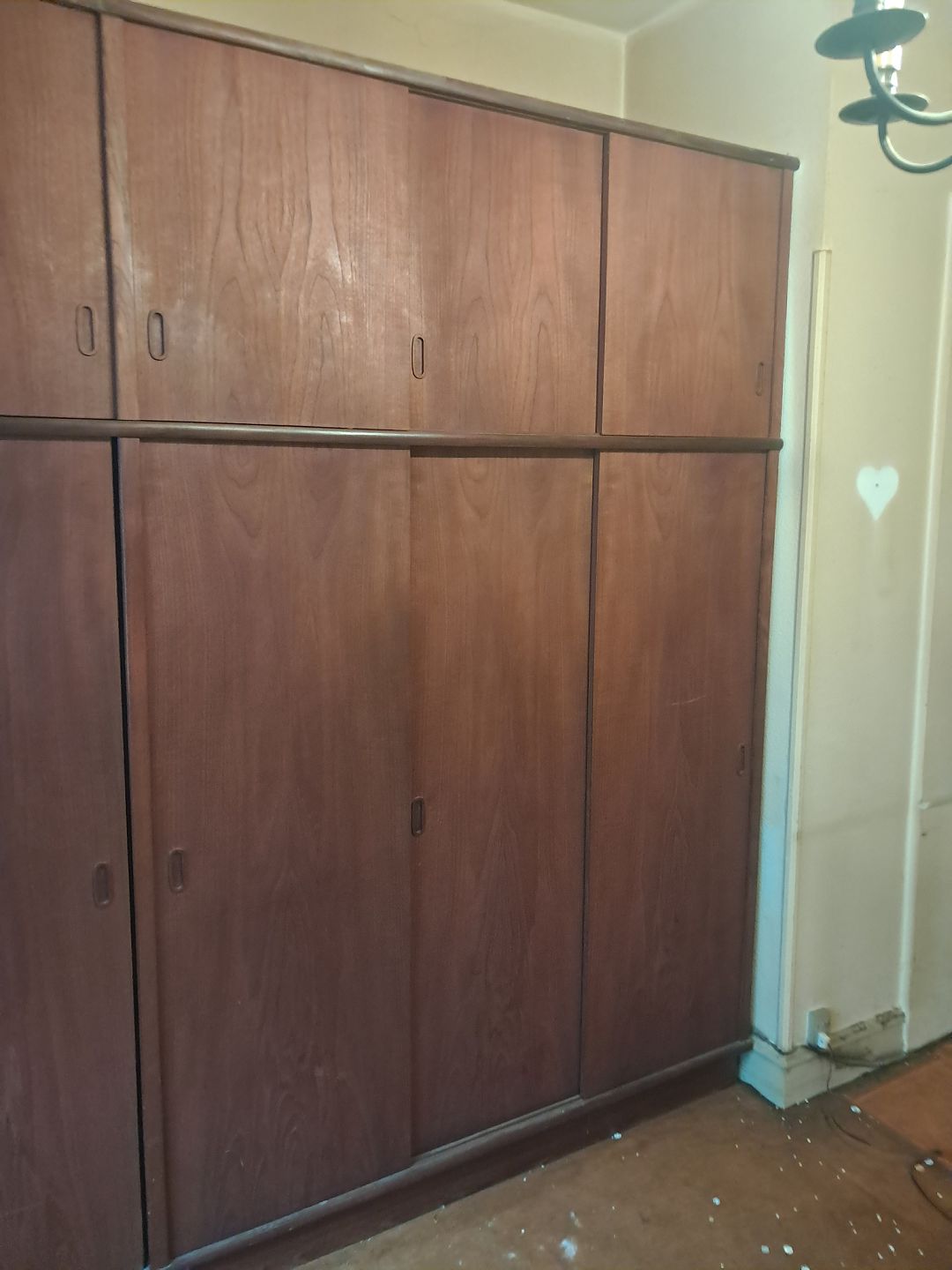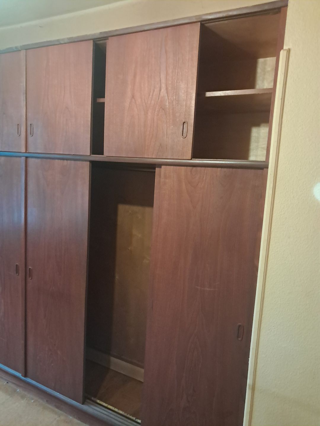 6 Dørs-klædeskab i fineret teaktræ, fra 1960erne.Det har brugsspor og skal vaskes ned, det lugter af tobaksrøg.