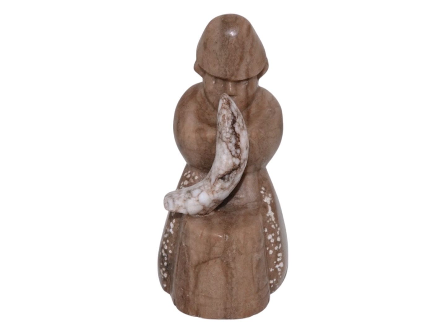 Grønlandica lille Iniut figur i fedtsten, mand fra Grønland med fisk.Den er formentlig af nyere dato.