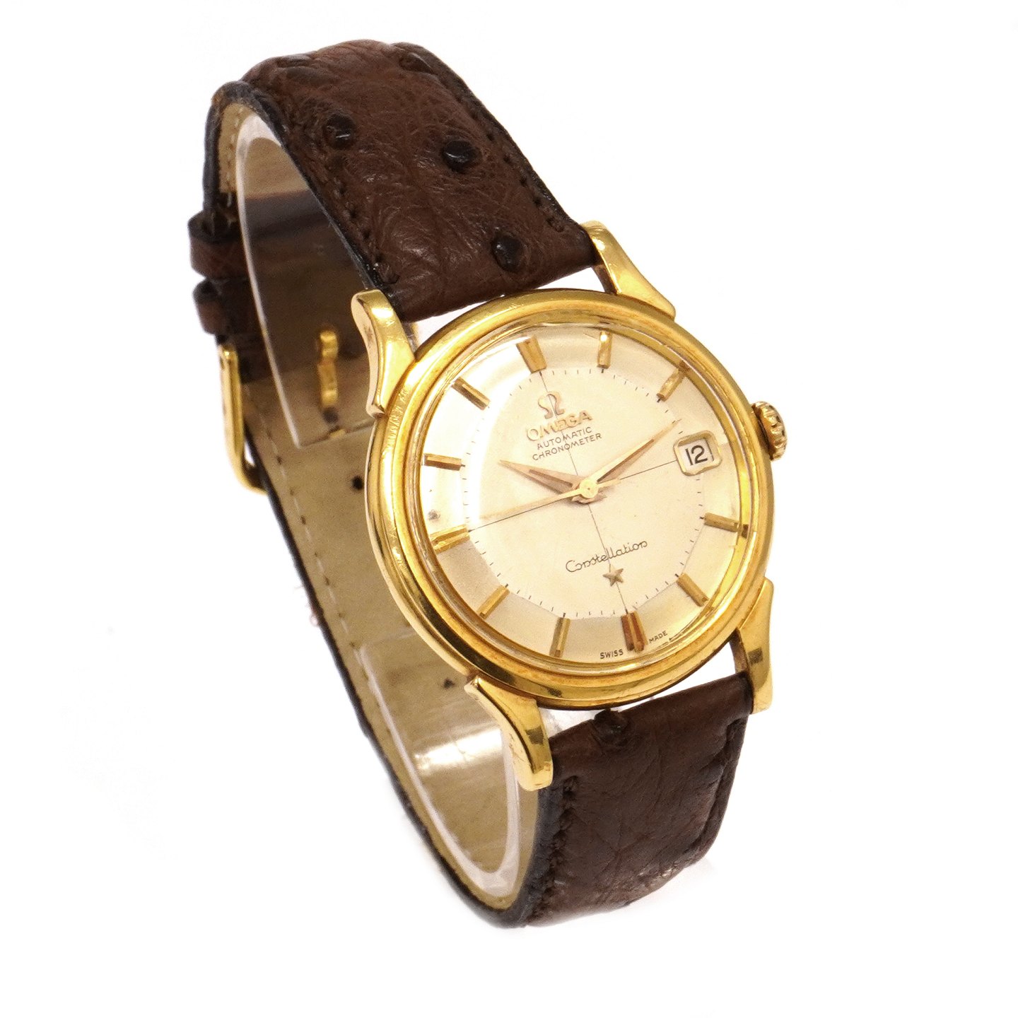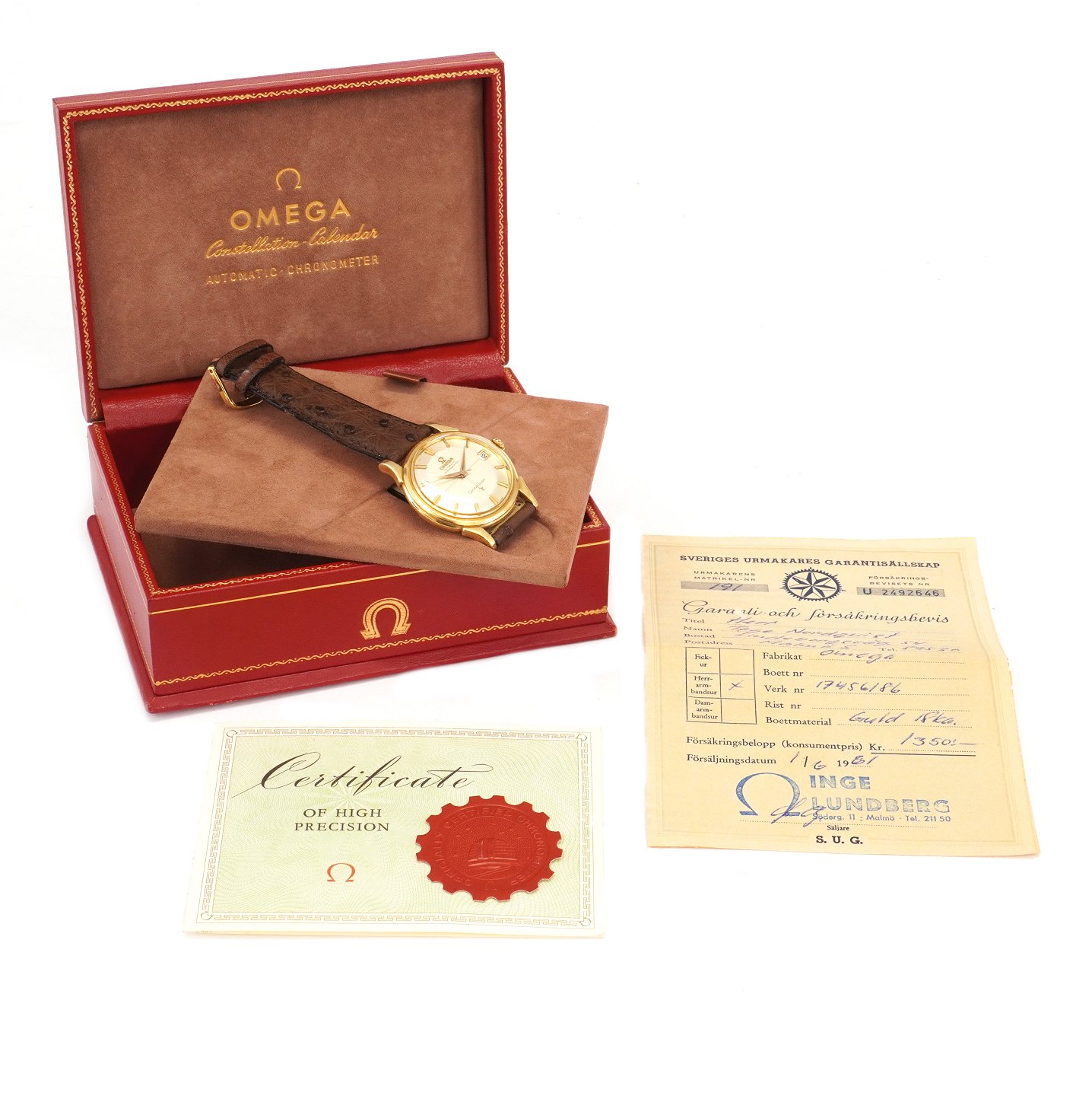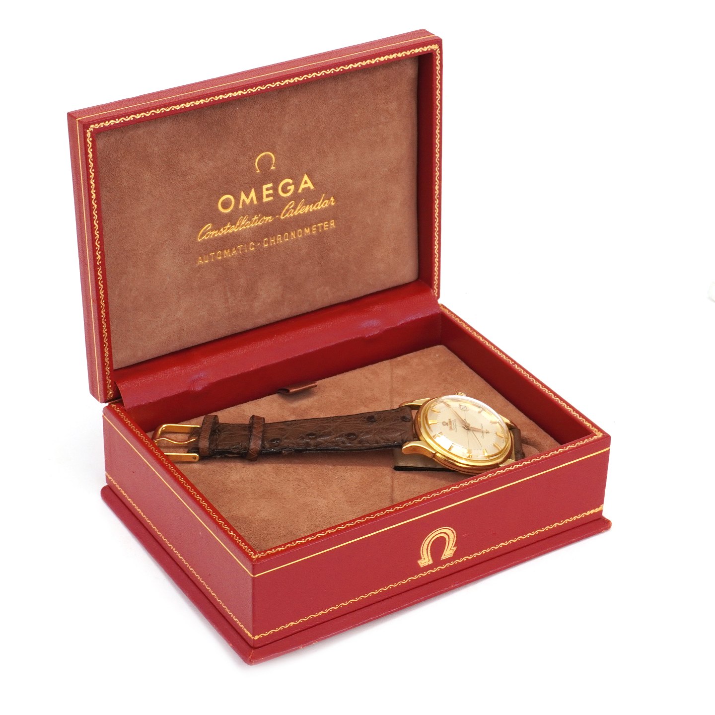 Omega Constellation Pie Pan aus 18kt Gold mit Box und Zertifikat Ref. 14382 82SC verkauft am 01.06 1961Kaliber 561. D: 34mm