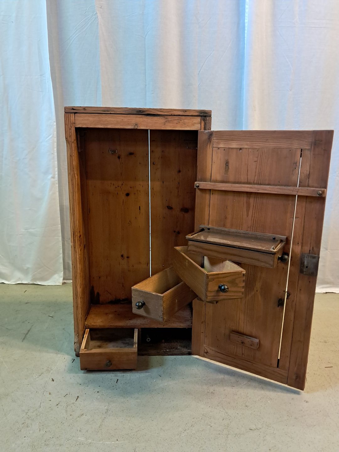 Skab i massivt fyrretræ, fra 1920erne.Det har brugsspor.
