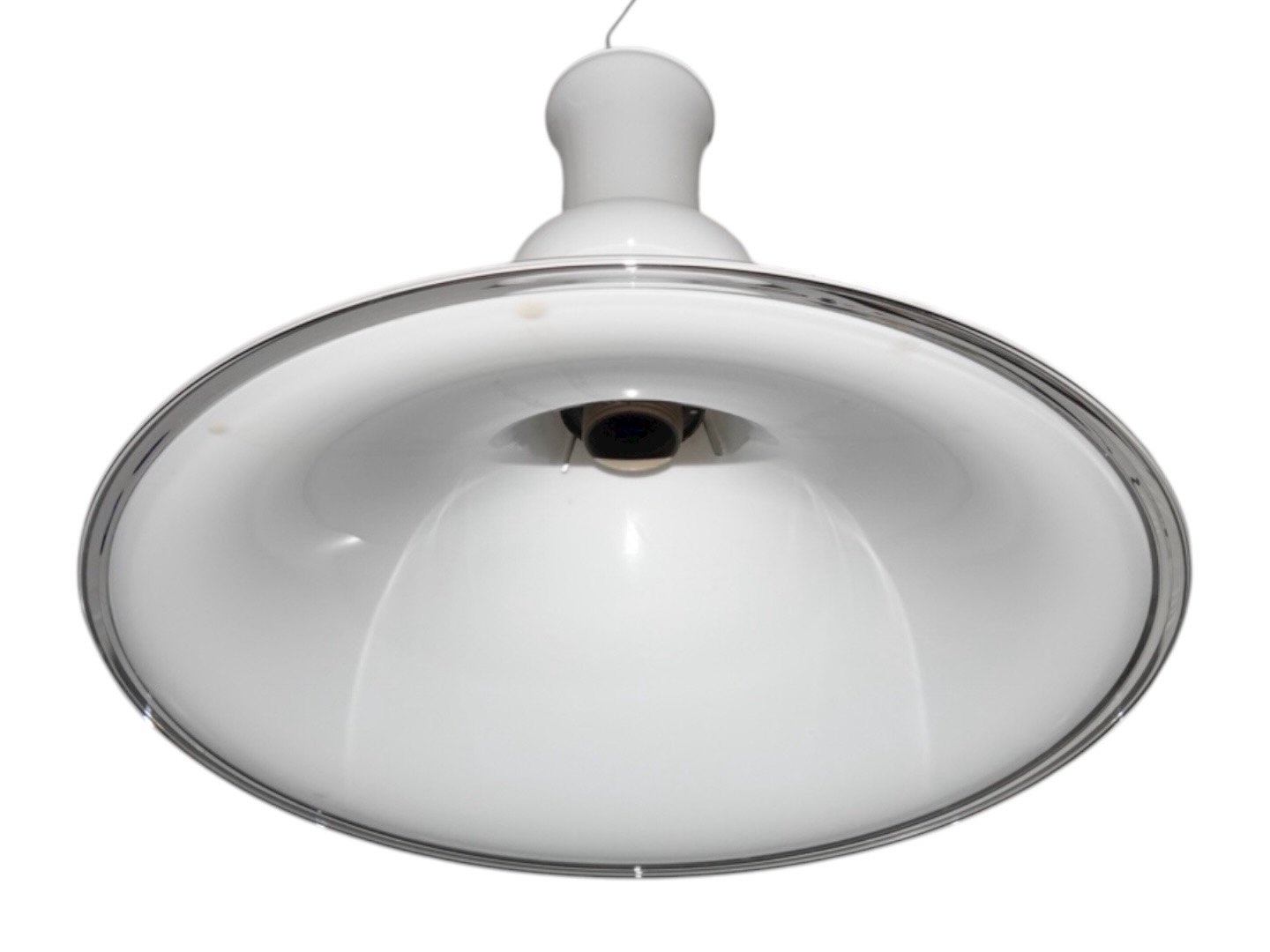 Holmegaard / Royal Copenhagen, stor Etude pendel i hvidt glas med den yderste kant med klart glas.Diameter 38,0 cm.