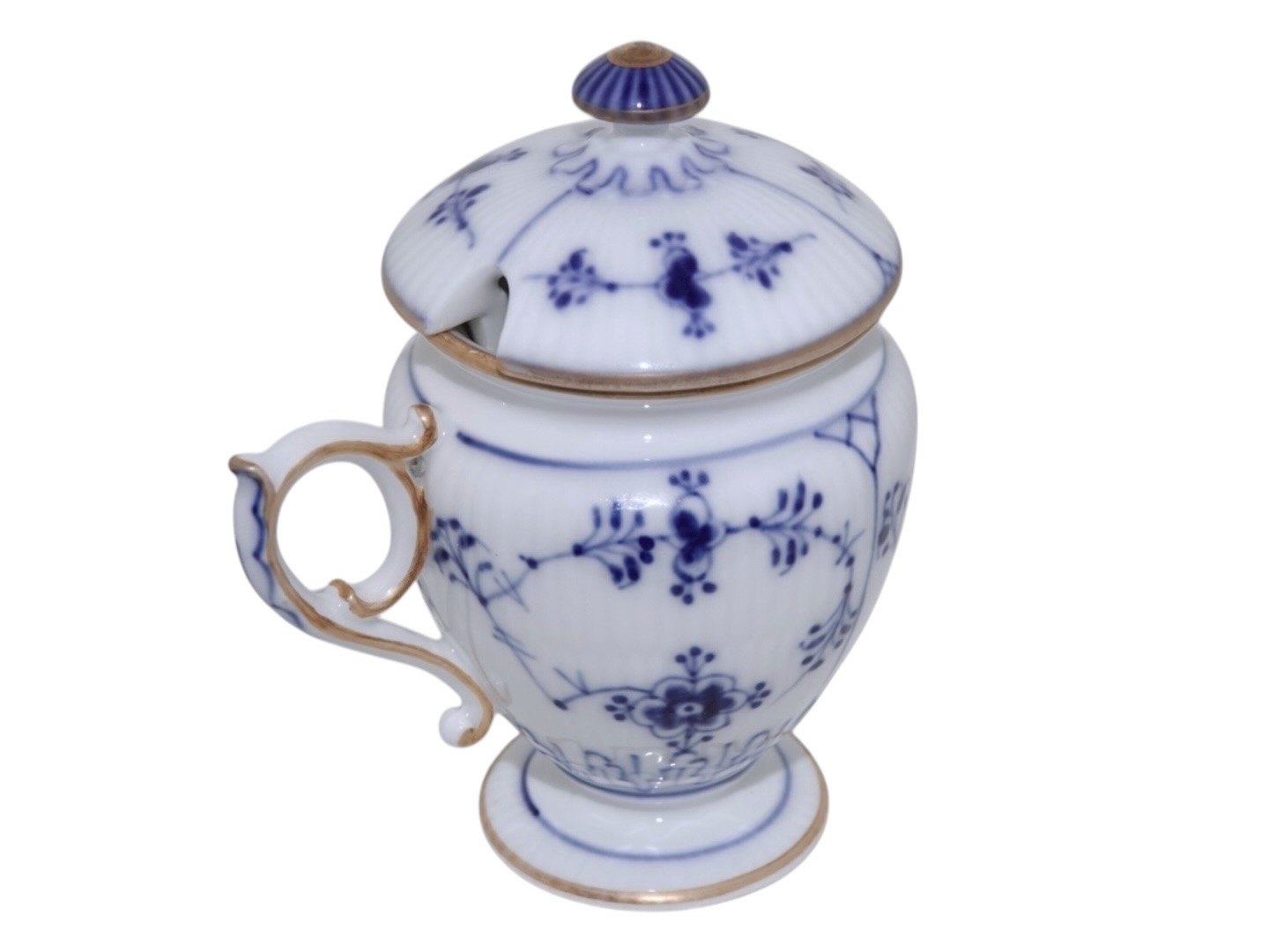 Royal Copenhagen Musselmalet Riflet med guldkant, sennepskande.