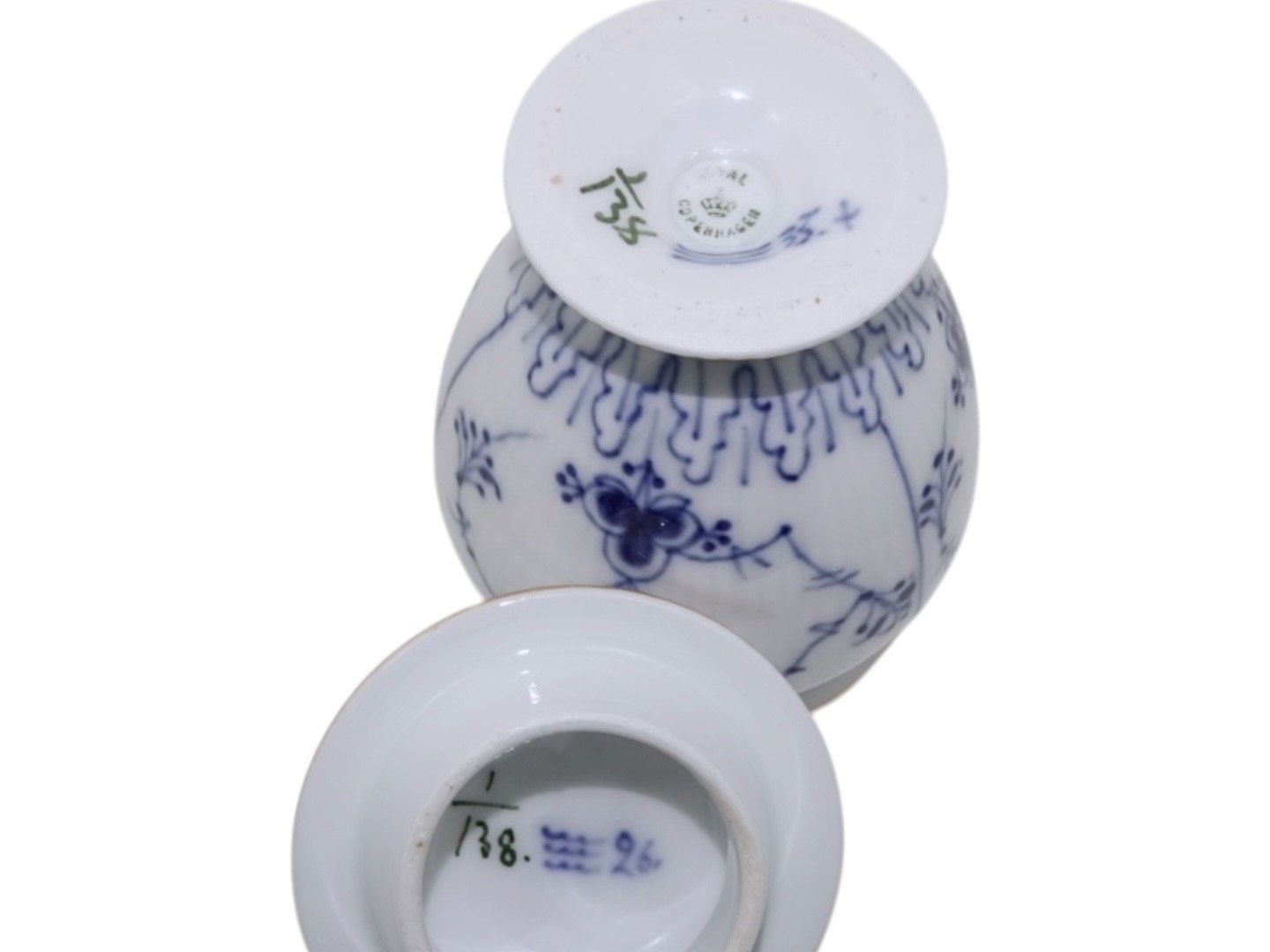 Royal Copenhagen Musselmalet Riflet med guldkant, sennepskande.Af fabriksmærket kan det udledes, at denne er produceret mellem 1898 og 1923.