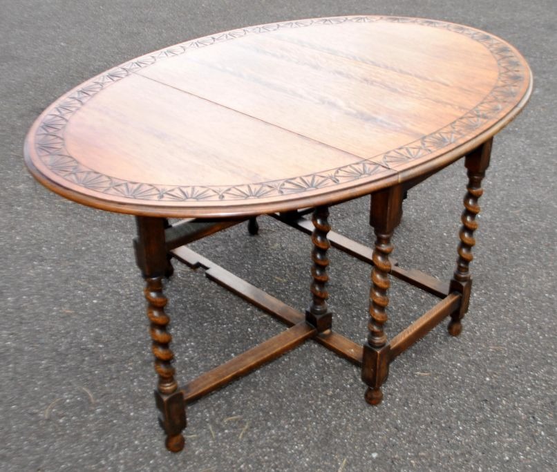 Englischer gateleg tisch aus Eiche, 19. Jahrhundert. Mit gedrechselten Beinen. Mit Dekoration auf der Oberseite. H.: 73 cm. B.: 105 cm. T.: 48 cm. Ausgezogen: 148 cm.Ausgezeichneter Zustand.