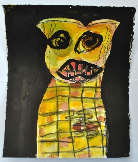 Kühl, Lena (1950 -) Dänemark: Komposition in Gelb und Schwarz, 2023. Aquarell und Tinte auf Papier. Signiert: LK - 2023. H: 31 cm. B: 25 cm.Ungerahmt.
