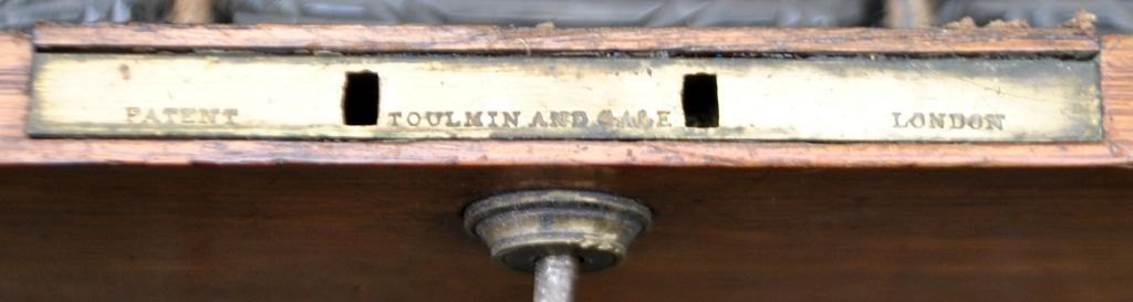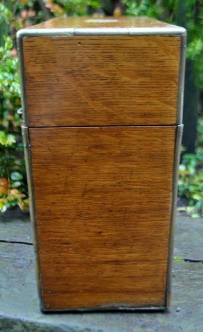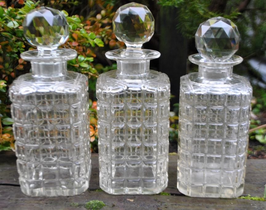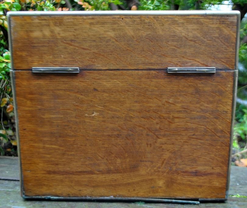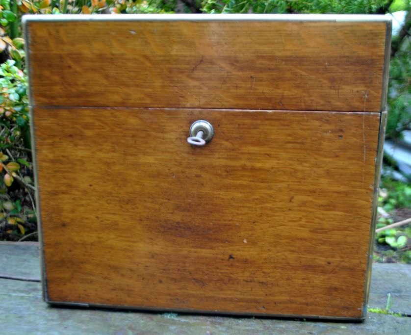 Englischer Tantalus mit drei Kristallkaraffen, 19. Jahrhundert. Polierte Eichenholzbox mit Schloss und Schlüsselschild. Enthält drei Karaffen mit Stöpsel. Gestempelt. Höhe: 27 cm. Länge: 30 cm.Bestellnummer: 28485
