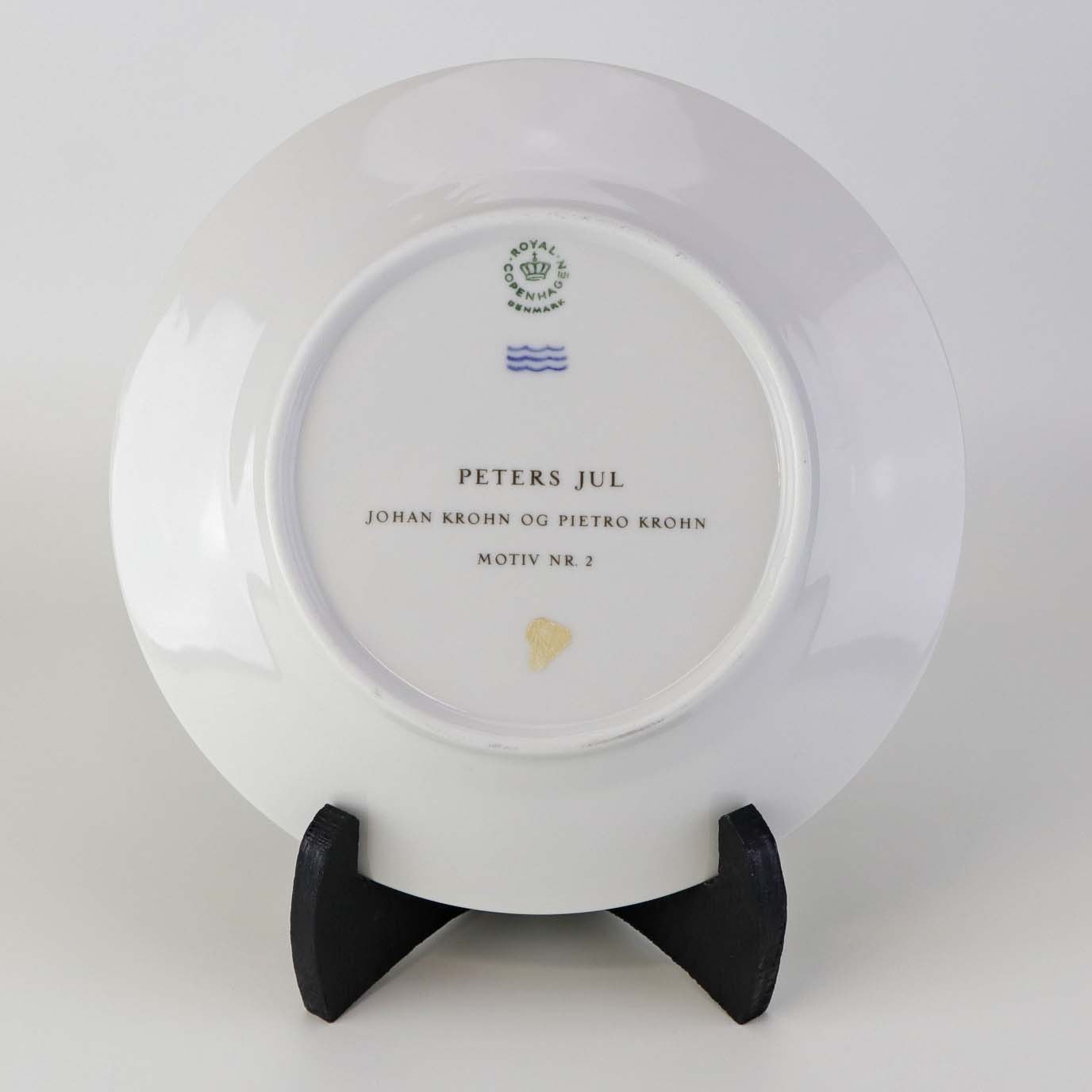 Flad desserttallerken i kongeligt porcelæn fra serien Peters Jul med motiv af mor og Anders. Nr. 2