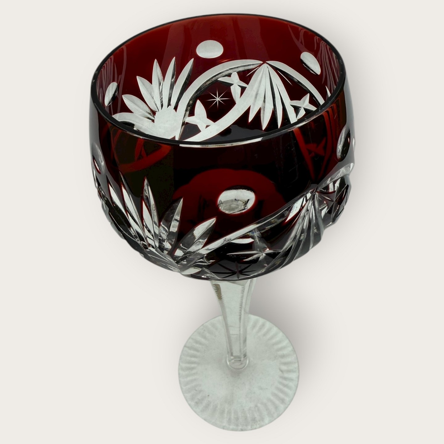 Böhmisches Kristallglas, Weinglas mit Schliff, Bordeaux, 19,5 cm hoch, 8,5 cm Durchmesser *Perfekter Zustand*Lager: 1