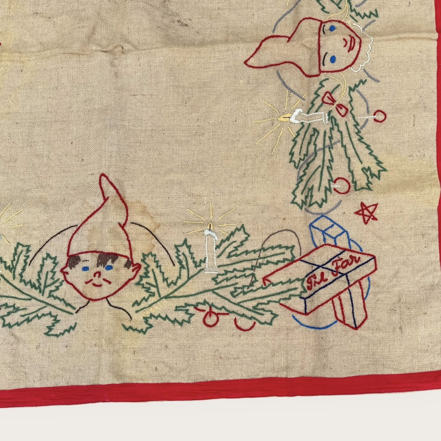 Weihnachtsbaumdecke, Stickerei mit Weihnachtsmotiv, 120 cm x 120 cm *Schöner, patinierter Zustand*Lager: 1