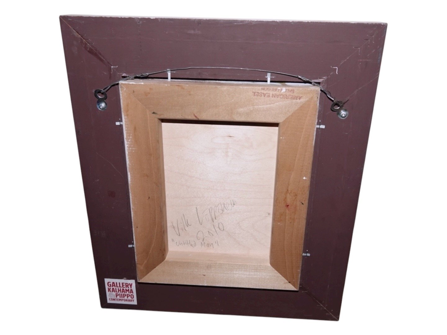 Ville Löppönen (født 1980 i Finland).Akryl og oliemaleri af nøgen mand i bred sølvramme fra 2010.