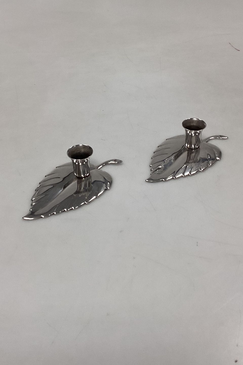 Par små Lyseholdere i Sølvplet fra Kronen SølvvarefabrikFormet som Blade.
