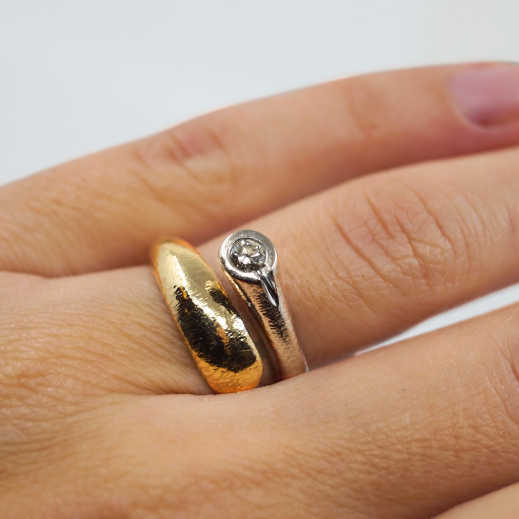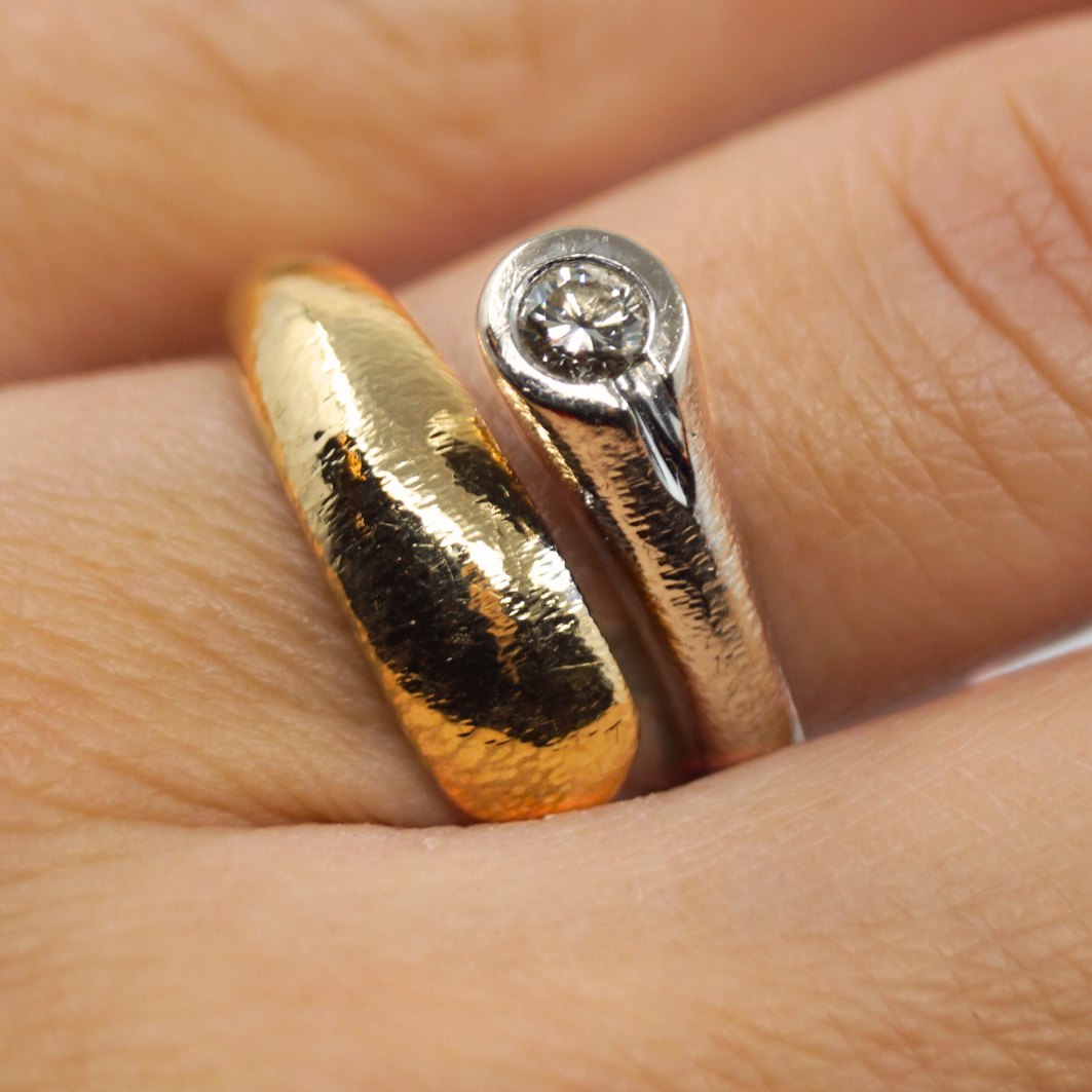 Ole Lynggaard guld smykke.Ole Lynggaard ring af 14 kt. guld og hvidguld. Med diamant, 0.15 ct.