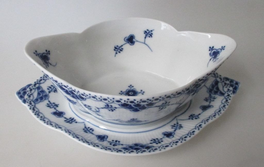 Royal Copenhagen, Sauciere, 587, geriffelte Hälfte Spitze, 20. Jahrhundert., Kopenhagen, Dänemark.